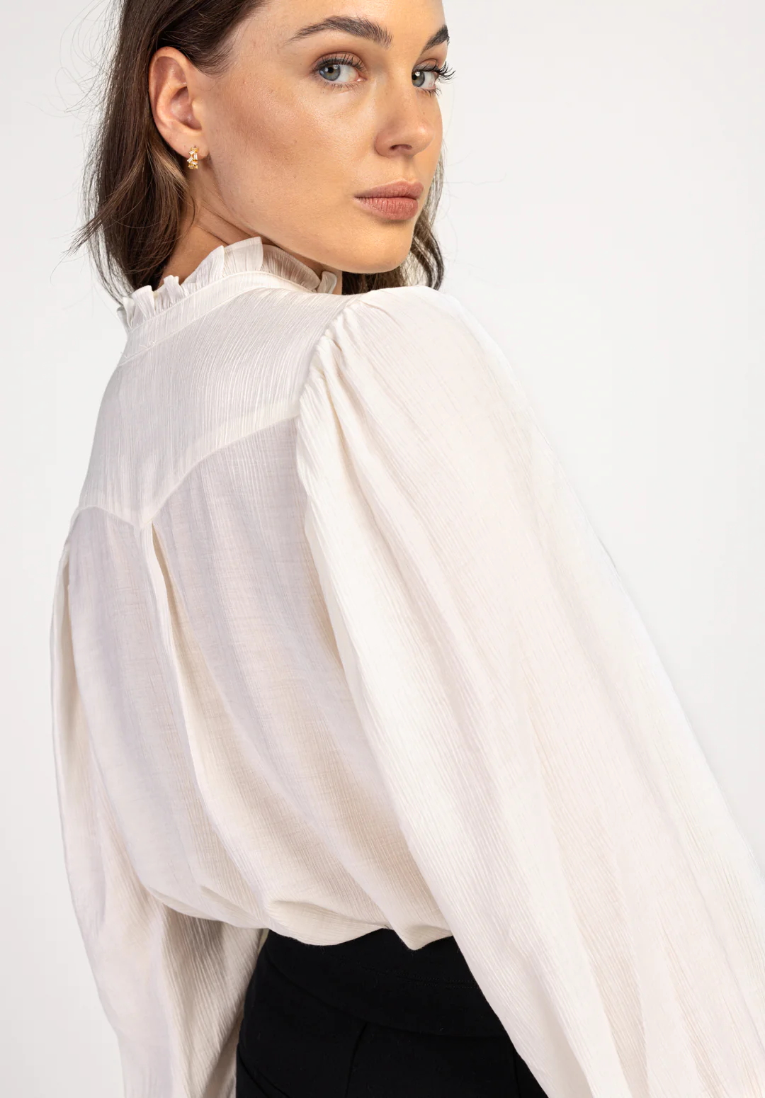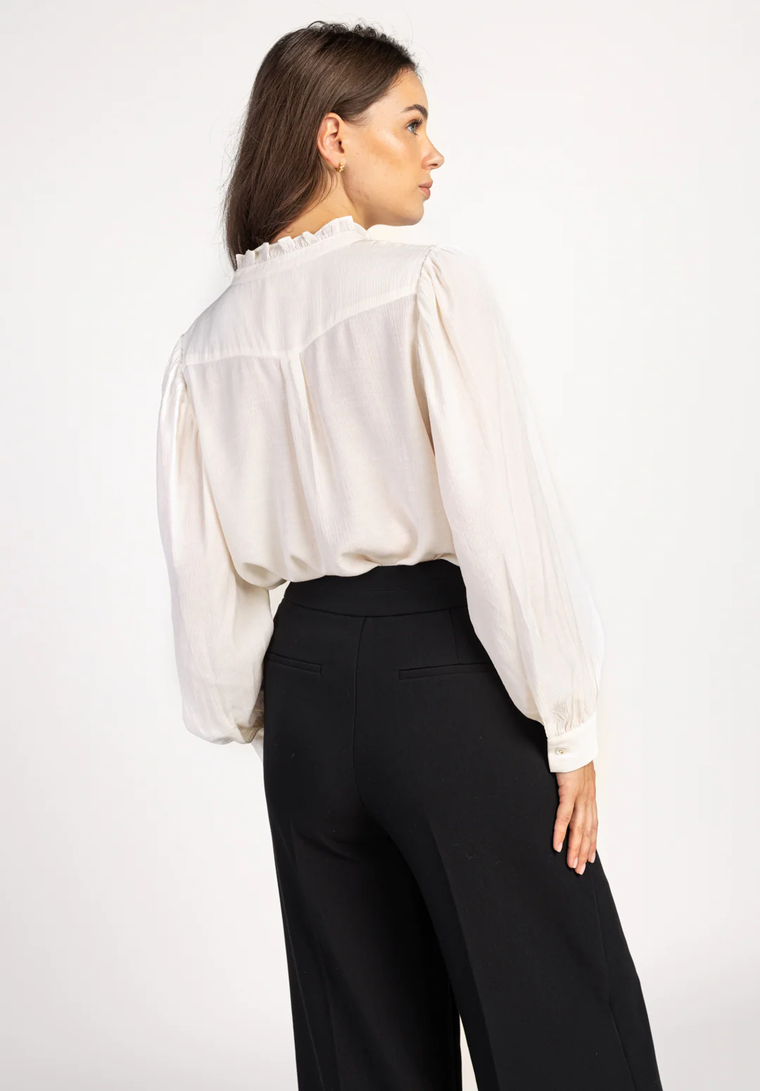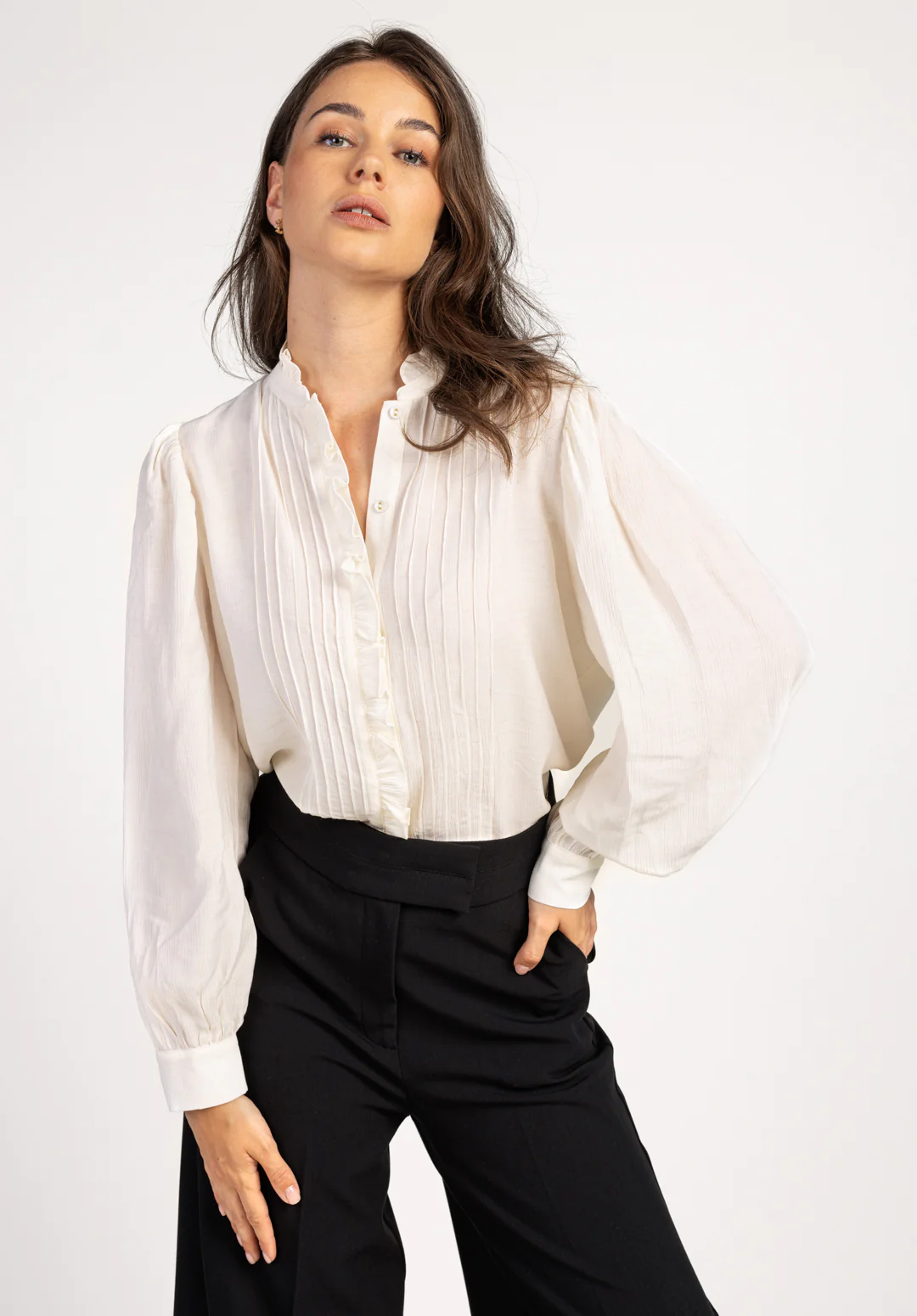 Ontdek de elegante charme van de Aaiko AYLENA VIS 516 blouse in stijlvol off white. Deze prachtige damesblouse is een must-have voor elke garderobe, perfect voor zowel casual als formele gelegenheden. Met zijn tijdloze design en aandacht voor detail, biedt Aaiko kwaliteit en stijl in één.