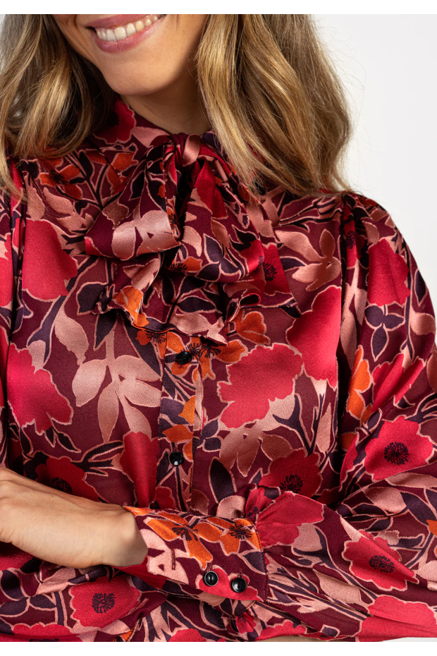 Ontdek de perfecte aanvulling op jouw wintergarderobe met het CHARLOTTA PES 505 T-shirt van Aaiko. Dit elegante T-shirt met lange mouwen in een diepe, donkerrode kleur voegt een vleugje klasse toe aan elke outfit. Ideaal voor de modebewuste vrouw die waarde hecht aan stijl en comfort.