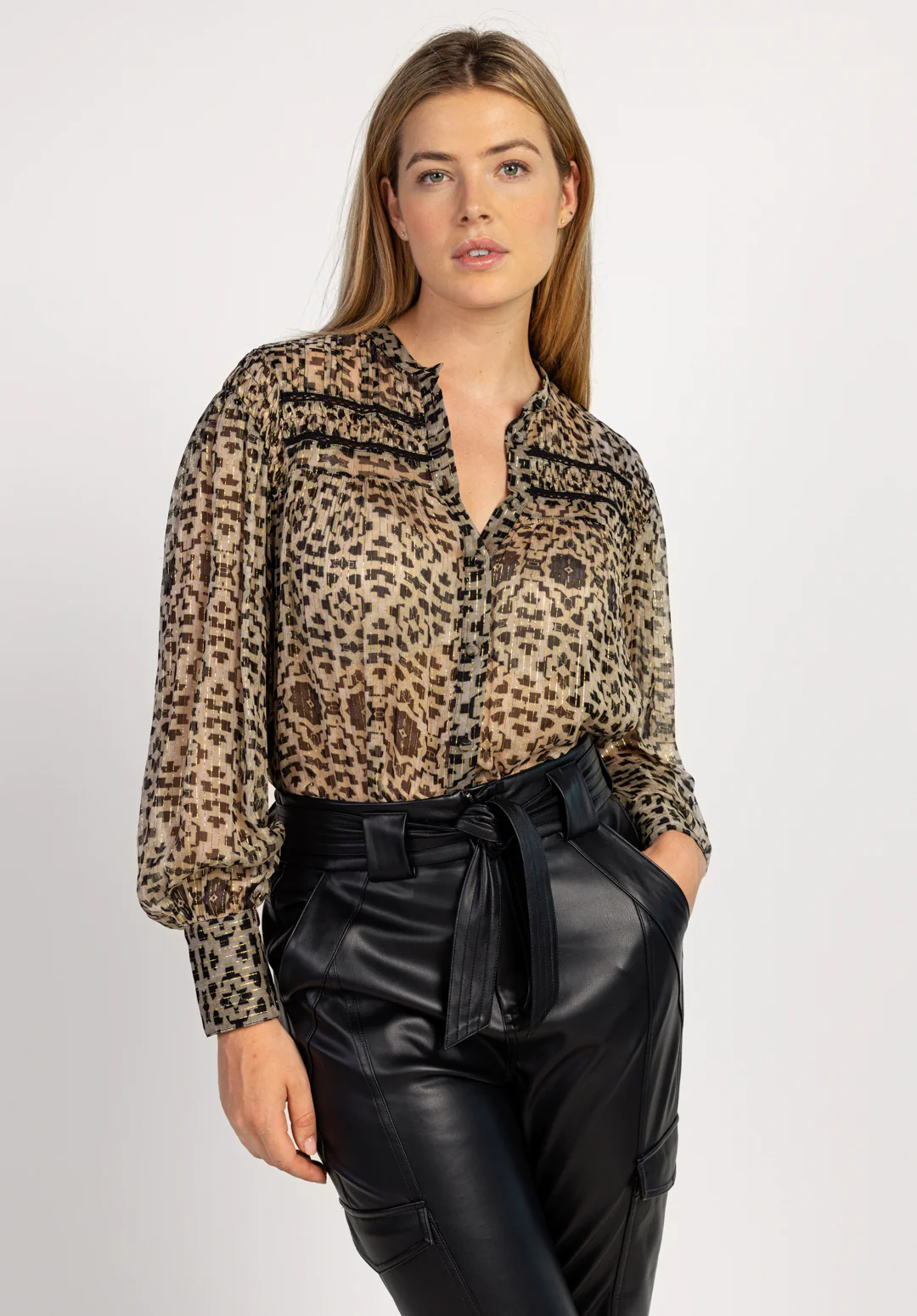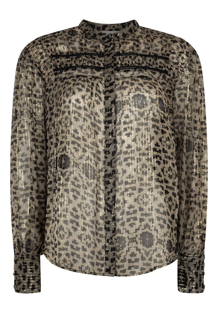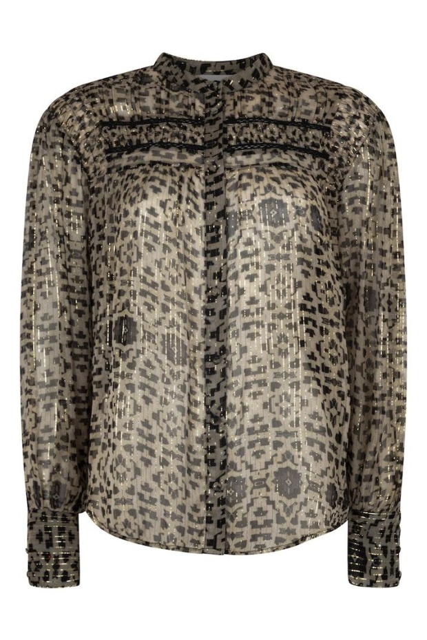 Ontdek de elegante charme van de DAIMY GRAPHICAL CHIQUE VIS 506 blouse van Aaiko, een must-have voor elke garderobe. Deze stijlvolle blouse, uitgevoerd in tijdloos zwart, biedt een perfecte mix van comfort en chique uitstraling, ideaal voor zowel een zakelijke als een casual setting.