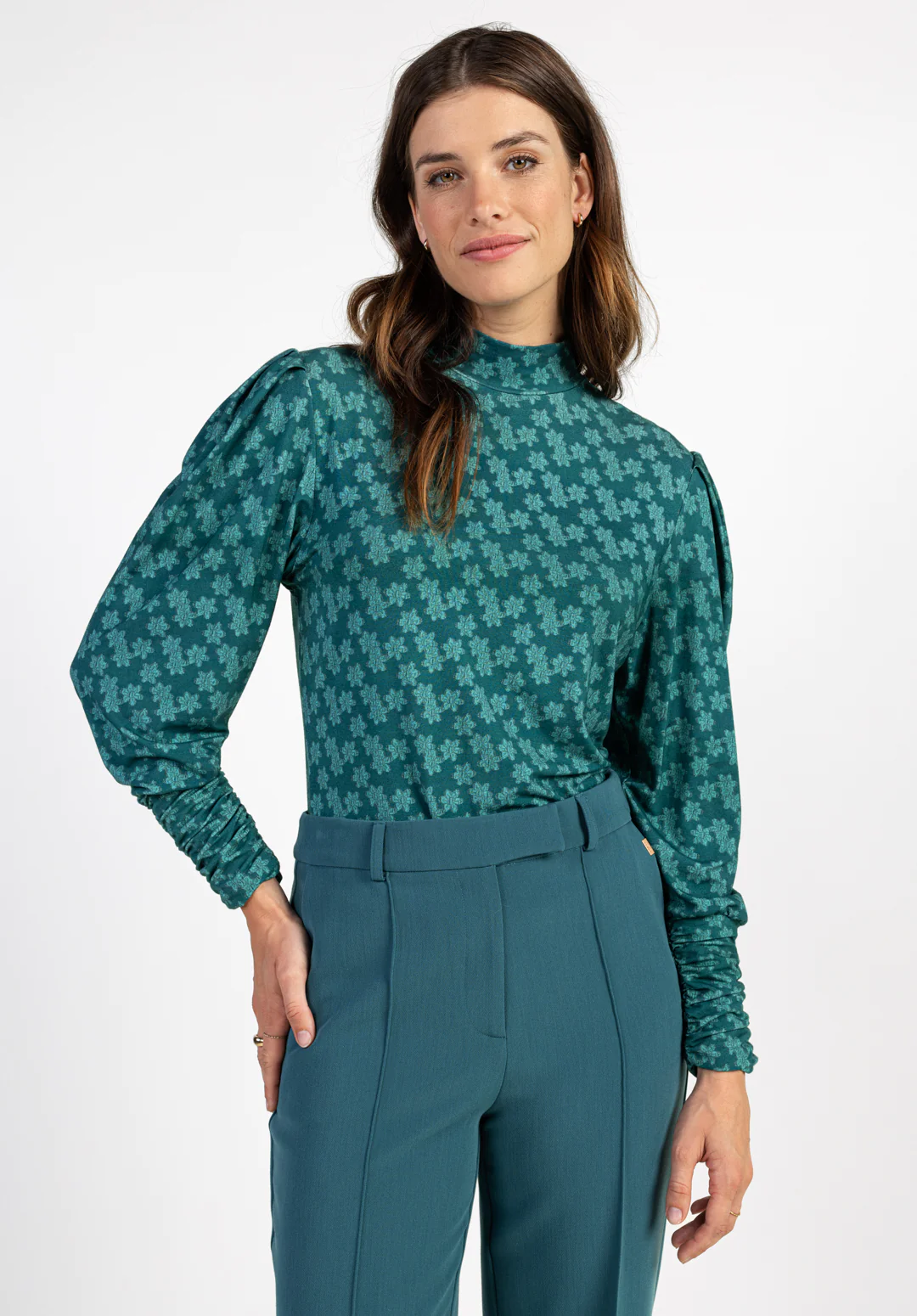 Ontdek de charme van het Aaiko T-shirt met lange mouwen, perfect voor de stijlvolle vrouw die op zoek is naar een unieke toevoeging aan haar wintergarderobe. Dit prachtige stuk, uitgevoerd in een opvallende turquoise kleur, is versierd met een verfijnd bloemenpatroon dat elke outfit een vleugje elegantie geeft. Gemaakt voor de modebewuste dame, combineert dit shirt comfort met een ongeëvenaarde stijl.