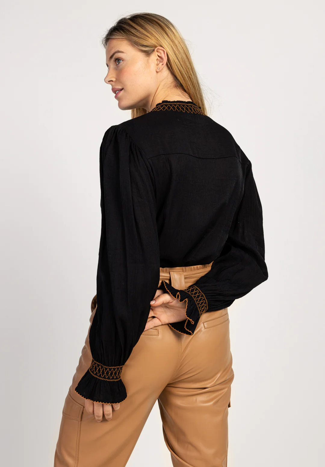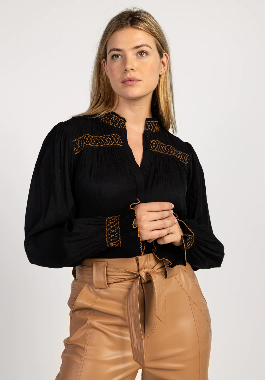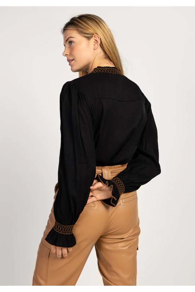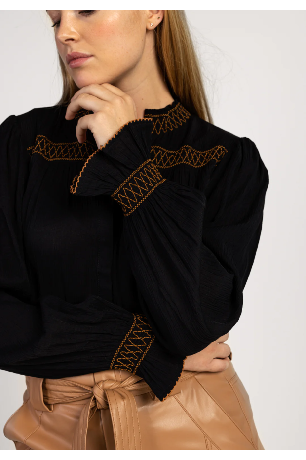 Ontdek de perfecte aanvulling op jouw wintergarderobe met de stijlvolle zwarte blouse van Aaiko. Deze elegante blouse, ontworpen voor de modebewuste vrouw, combineert moeiteloos comfort met een tijdloze uitstraling. Met zijn pure katoenen samenstelling biedt het niet alleen een zacht gevoel op de huid, maar ook de duurzaamheid die je van een kwaliteitsmerk als Aaiko mag verwachten.