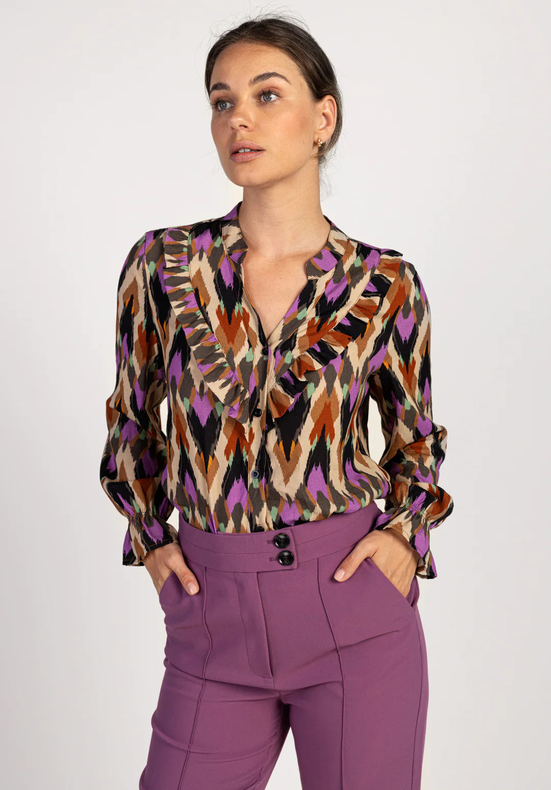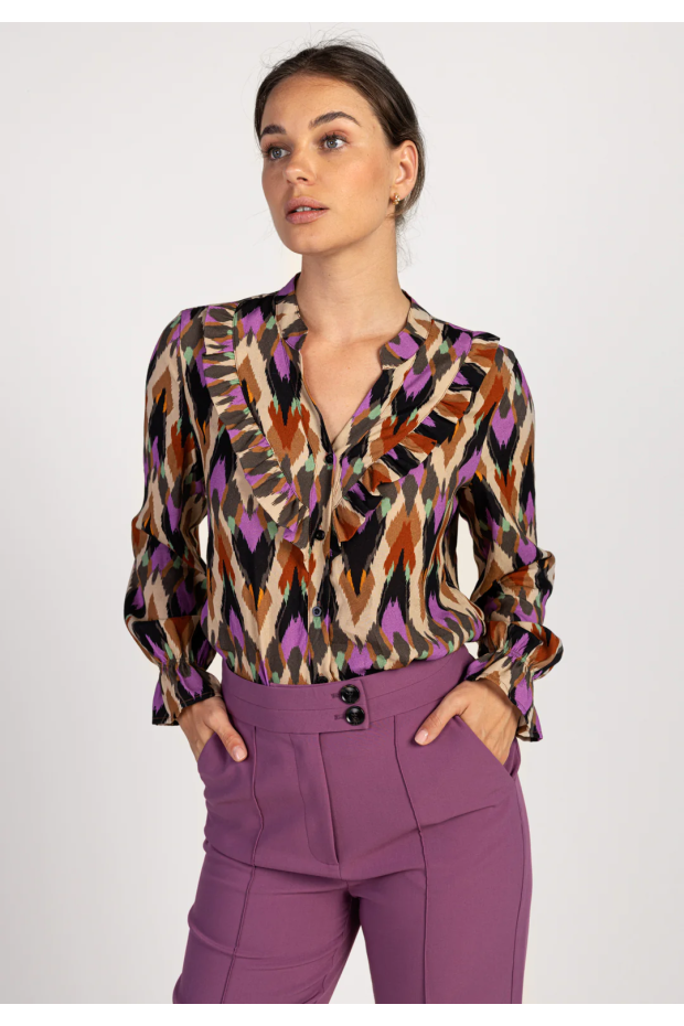 Ontdek de stijlvolle charme van de Aaiko JILL MULTI ETHNIC VIS 523 blouse in de prachtige zandkleur. Deze blouse is een must-have voor elke modebewuste vrouw die haar garderobe wil verrijken met een stuk dat zowel veelzijdig als uniek is. Gemaakt van hoogwaardige viscose, biedt deze blouse een uitzonderlijk comfort en een zachte aanraking, perfect voor de koudere maanden.