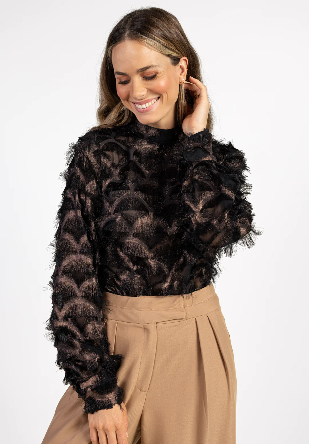 Ontdek de stijlvolle en comfortabele LUCIA PES 505 van Aaiko, perfect voor de modebewuste vrouw. Dit elegante zwarte T-shirt met lange mouwen is een veelzijdige toevoeging aan je garderobe, ideaal voor zowel een casual dagje uit als een chique avond. Gemaakt van hoogwaardig polyester, biedt het zowel comfort als duurzaamheid, waardoor je er seizoen na seizoen op je best uitziet.