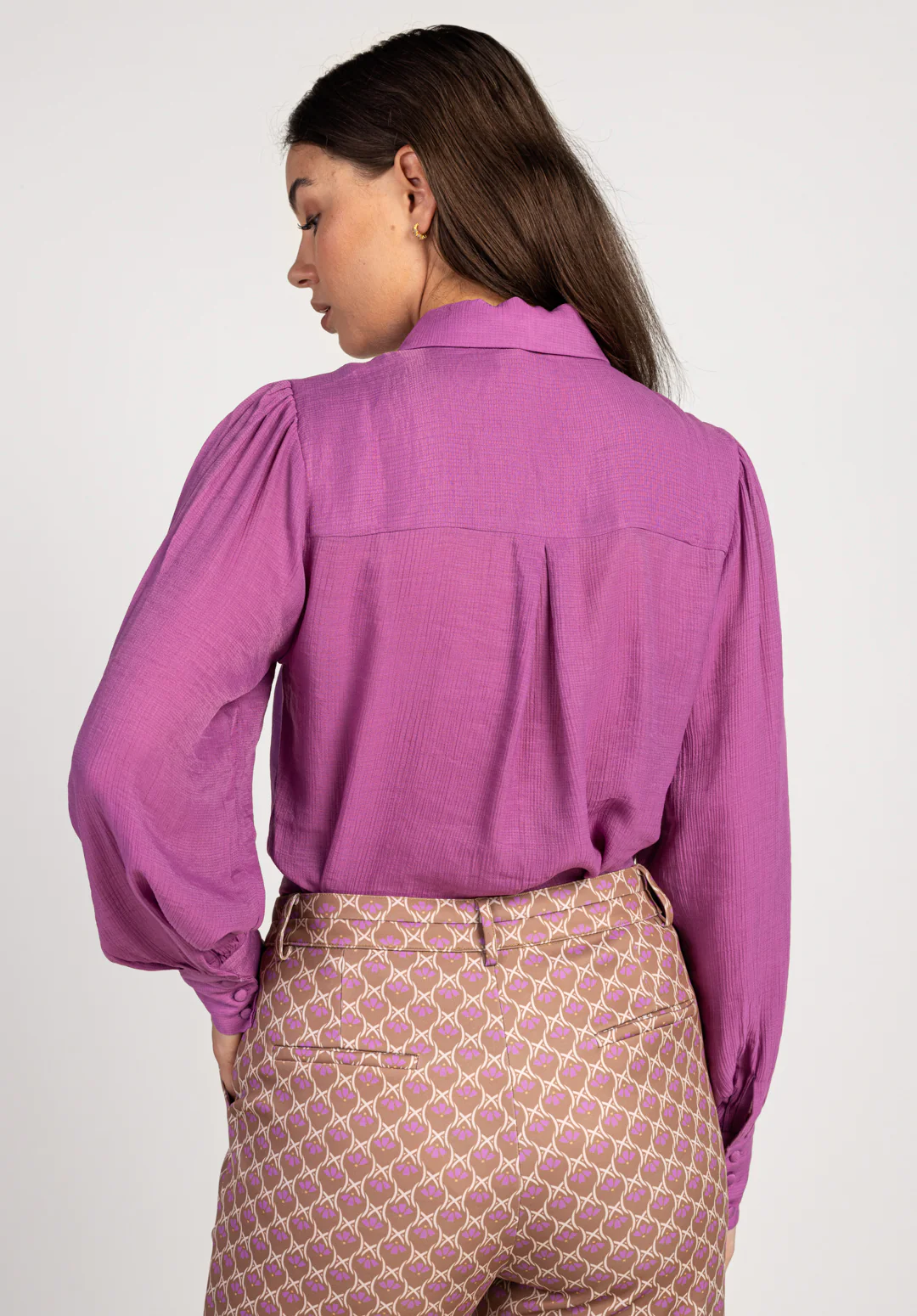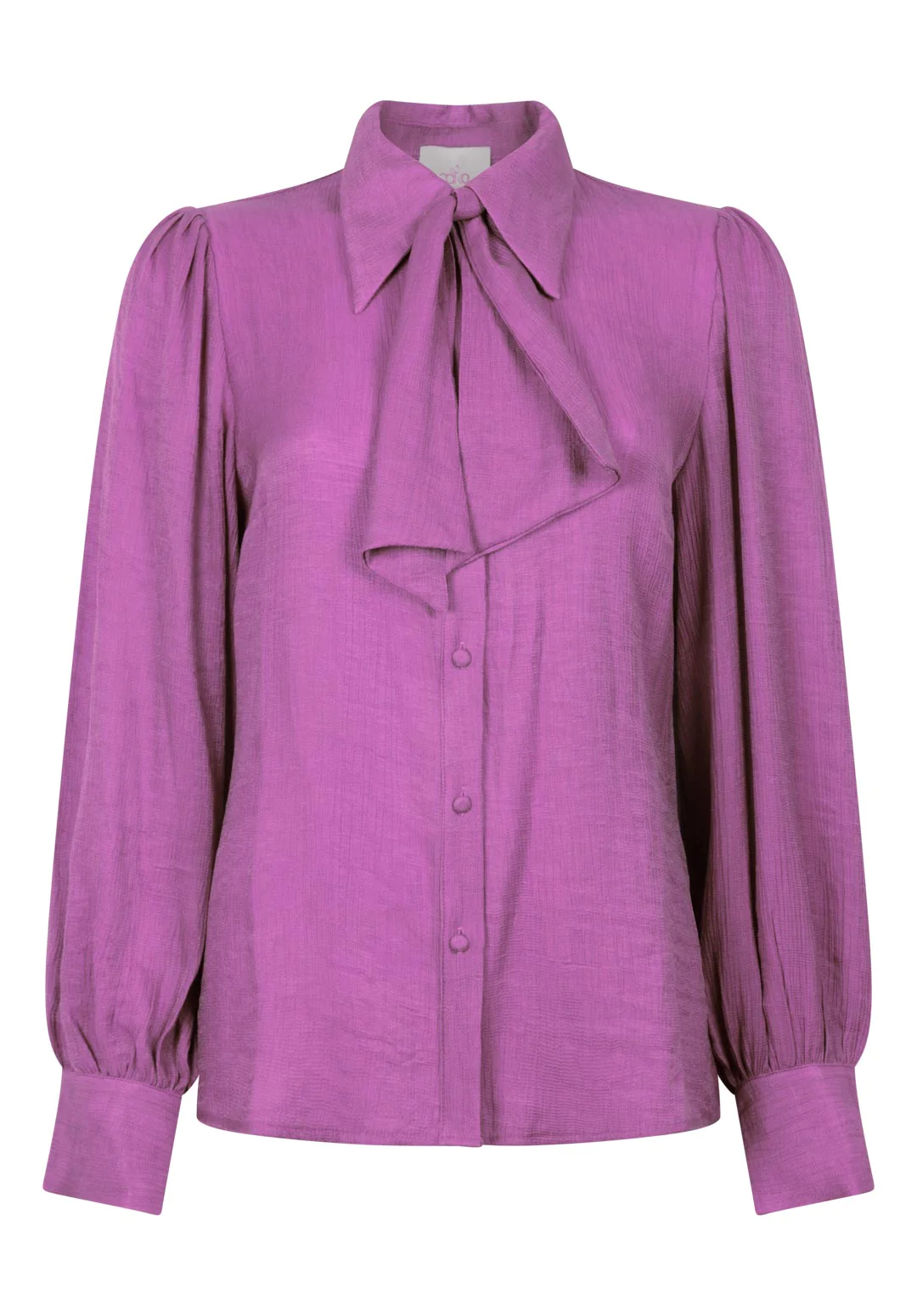 Ontdek de stijlvolle en vrouwelijke charme van de Aaiko VERONNE TIE VIS 618 blouse in een prachtige violet tint. Deze blouse, perfect voor de wintermaanden, combineert modebewustzijn met comfort en kwaliteit.