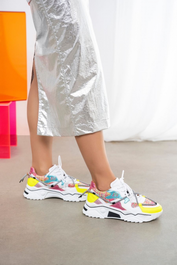 Ontdek de perfecte mix van comfort en stijl met de JUPITER tweed sneakers van DWRS Label. Deze opvallende sneakers, uitgevoerd in een unieke combinatie van roze en geel tweed, zijn een echte blikvanger en brengen een vleugje kleur in je zomergarderobe van 2024. Of je nu een dagje uit bent of een casual outfit een upgrade wilt geven, met deze sneakers loop je er altijd modieus bij.