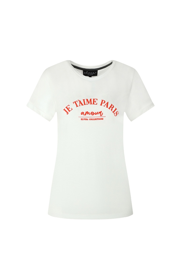 Ontdek de perfecte aanvulling op jouw zomergarderobe met het stijlvolle ELVIRA CASUALS T-shirt Paris in de frisse kleur Off White. Dit dames T-shirt combineert moeiteloos comfort met een vleugje Parijse chic, waardoor het een onmisbaar item is voor elke modebewuste vrouw.