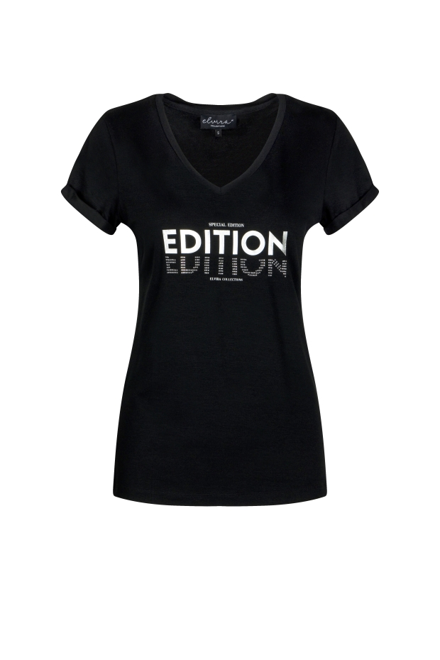 Ontdek de perfecte mix van stijl en comfort met het ELVIRA CASUALS T-Shirt Edition in de tijdloze kleur zwart, verrijkt met subtiele zilveren accenten. Speciaal ontworpen voor de modebewuste vrouw die waarde hecht aan zowel uitstraling als gemak. Dit T-shirt is een must-have voor elke garderobe, ideaal voor zowel een casual look overdag als een elegante uitstraling in de avond.