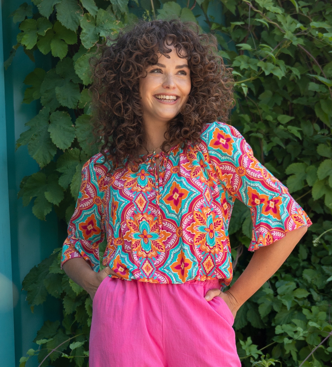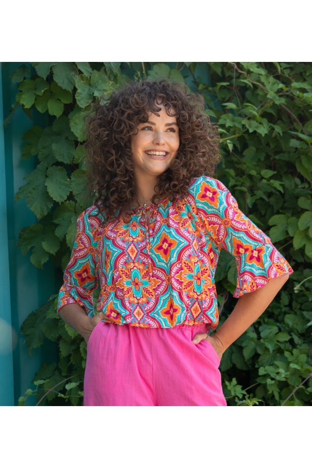Ontdek de charme van kleur en comfort met de 6613 Vickey - Tegel Bloem T-shirt van FOS Amsterdam, speciaal ontworpen voor de modebewuste vrouw. Dit prachtige T-shirt, uitgevoerd in een levendige fuchsiakleur, is de perfecte aanvulling op je zomergarderobe. Met zijn korte mouwen en unieke bloemendessin biedt het een frisse en stijlvolle look voor elke gelegenheid.
