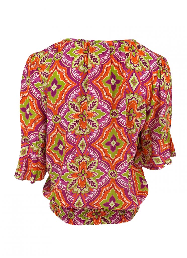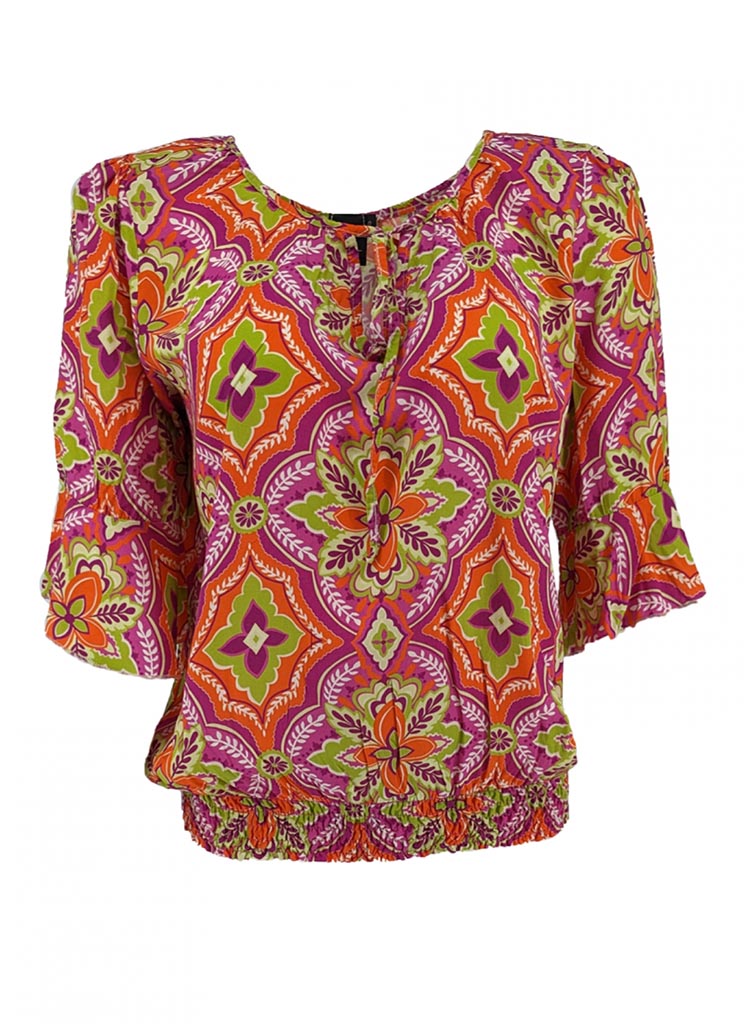Ontdek de charme van de 6613 Vickey - Tegel Bloem T-shirt van FOS Amsterdam, perfect voor elke zomerse dag. Met een prachtige violetkleur en een uniek tegelbloemontwerp, is dit T-shirt een must-have voor elke modebewuste vrouw die waarde hecht aan comfort en stijl.