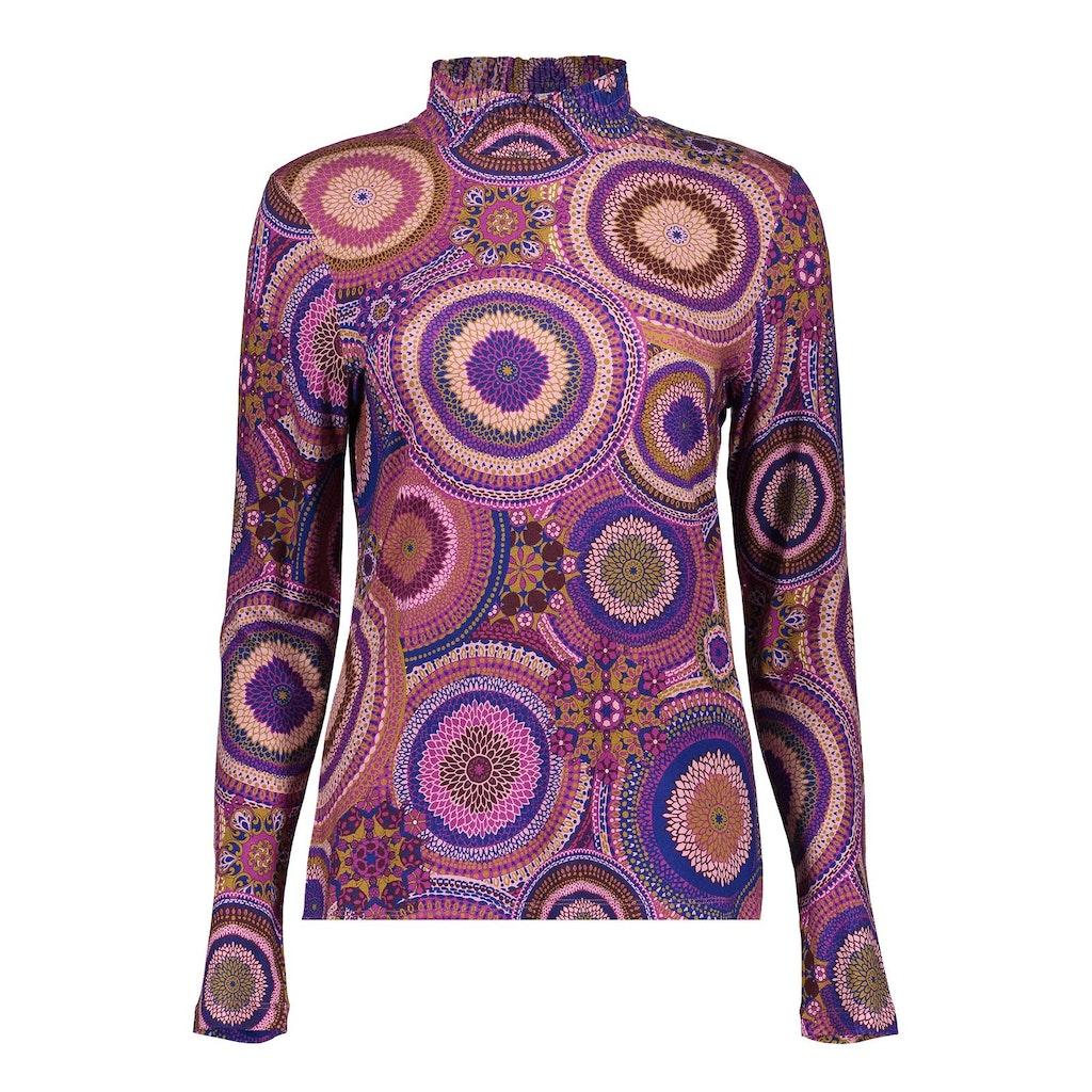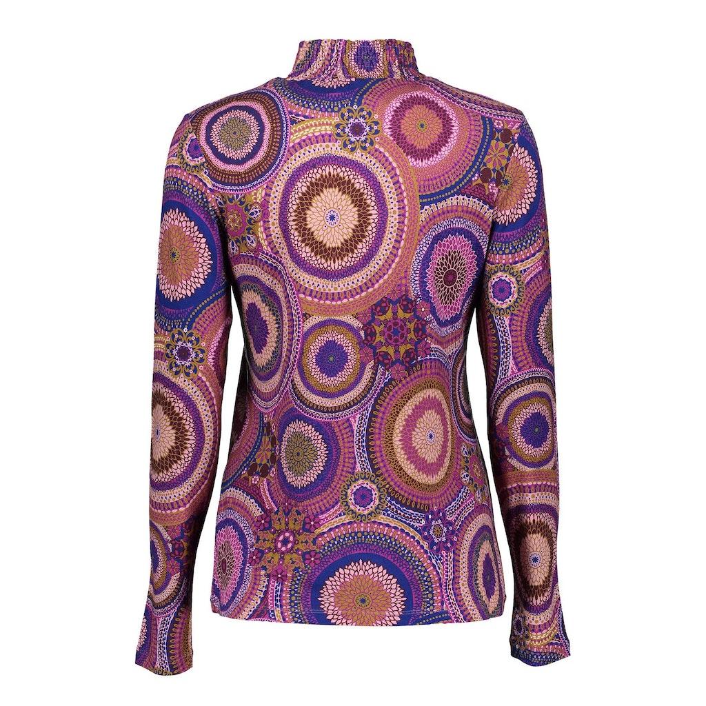 Stel een opvallende look samen met de Geisha dames top met levendige mandala print. Deze fuchsia top straalt met een mix van paars, fuchsia, beige en camel tinten, waardoor een visueel kunstwerk ontstaat. De mock neck en figure-hugging pasvorm geven een eigentijdse twist aan het ontwerp, terwijl de veelzijdigheid van deze top je uitnodigt om te experimenteren. Laat je persoonlijkheid stralen en omarm de kracht van de mandala.