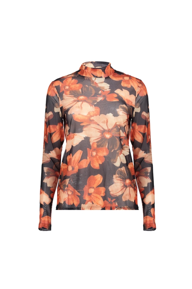Deze Geisha dames mesh top met bloemenprint is een waar pronkstuk voor je garderobe. Met zijn zwarte basis en prachtige bloemenprint in verschillende tinten oranje straalt deze top stijlvolle elegantie uit. De mock neck geeft een moderne twist aan het ontwerp, terwijl de aangesloten fit je figuur flatteert en een vleugje verfijning toevoegt. Gemaakt van hoogwaardige mesh stof is deze top zowel chic als comfortabel. Draag hem met een zwarte of oranje onderlaag voor een gedurfde look, of combineer hem met een zwarte broek voor een meer ingetogen stijl. Of je nu naar een feestje gaat of gewoon je dagelijkse look wilt opfleuren, deze Geisha mesh top is de perfecte keuze voor een moeiteloos chique uitstraling.