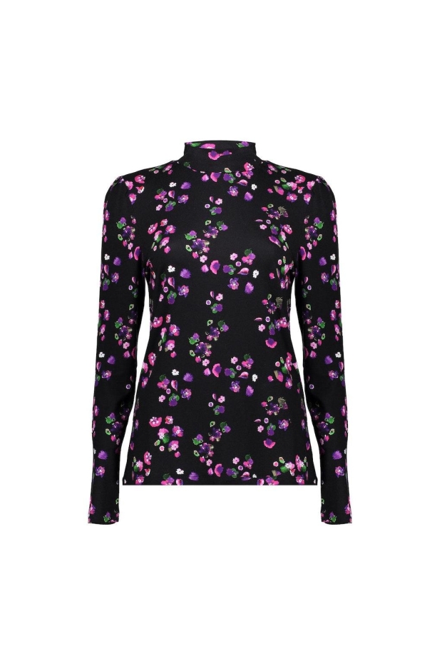 Geisha 32857-40 Top gathered neck multi flower 999 black/green/pink/cyclaam