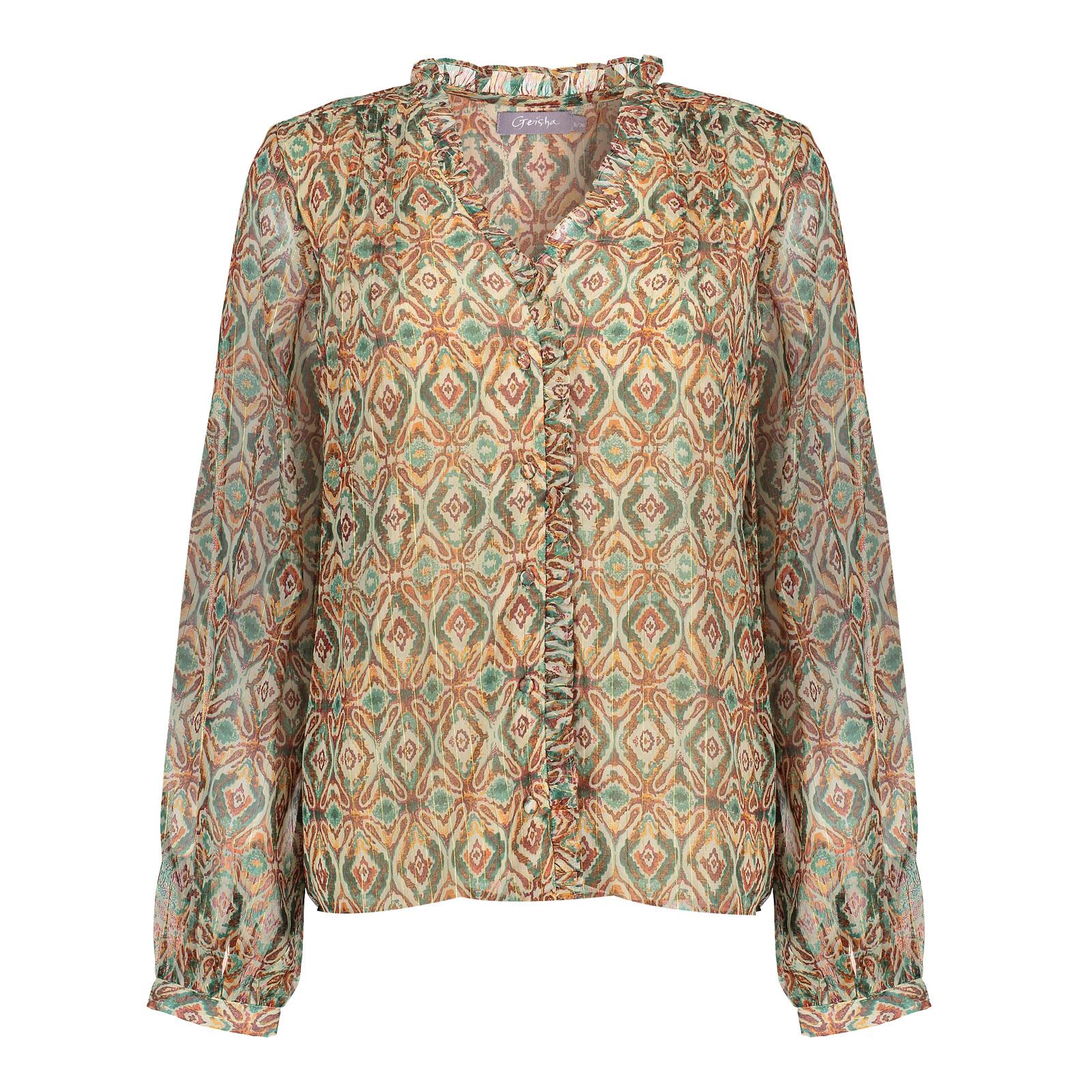 Ontdek de veelzijdige charme van de GEISHA 33536-21 Blouse in een prachtige Multi Colour mix van kit, cognac en pine green. Deze blouse is de perfecte aanvulling op je wintergarderobe, ontworpen om zowel comfort als stijl te bieden tijdens de koudere maanden.