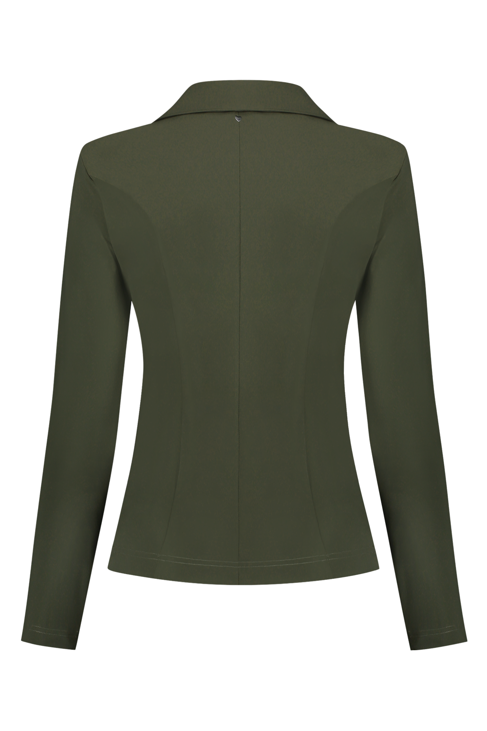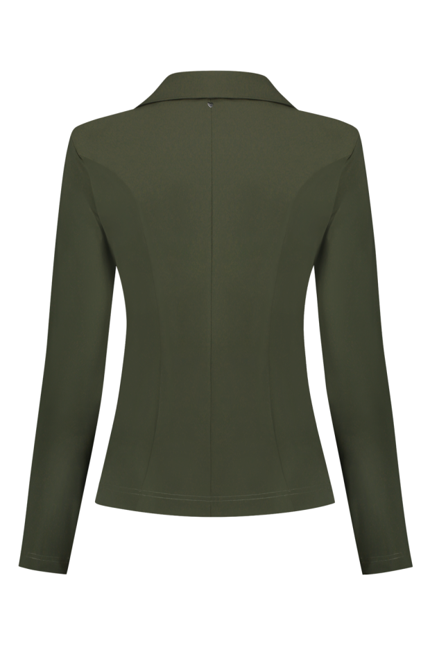 Stap stijlvol de winter in met deze prachtige olijfgroene blazer van Helena Hart. Perfect voor de modebewuste vrouw die waarde hecht aan kwaliteit en stijl. Deze blazer, met zijn unieke ontwerp en comfortabele pasvorm, is een must-have voor je wintergarderobe.