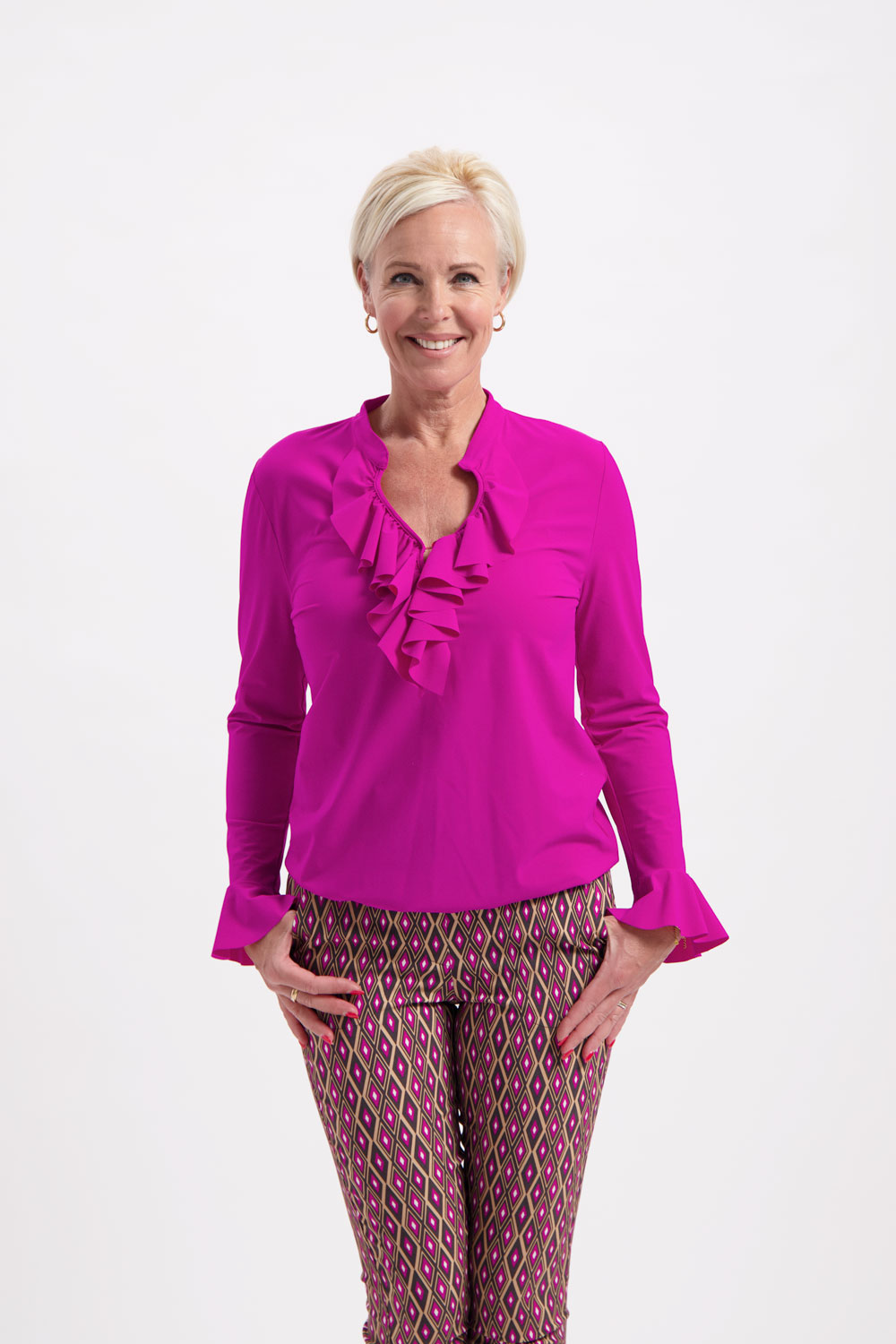 Ontdek de charme van de 7257 Blouse Ruche van HELENA HART in een prachtige cyclaam kleur. Deze stijlvolle damesblouse is een perfecte aanvulling op je wintergarderobe, met een unieke ruche afwerking die een vleugje elegantie en vrouwelijkheid toevoegt aan elke outfit.