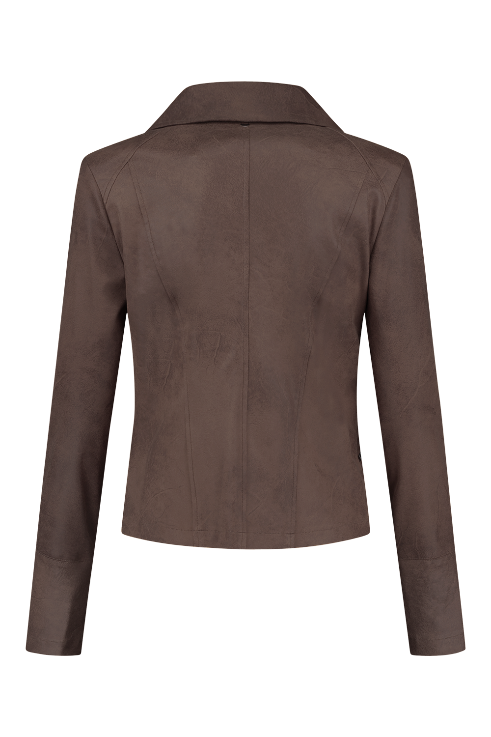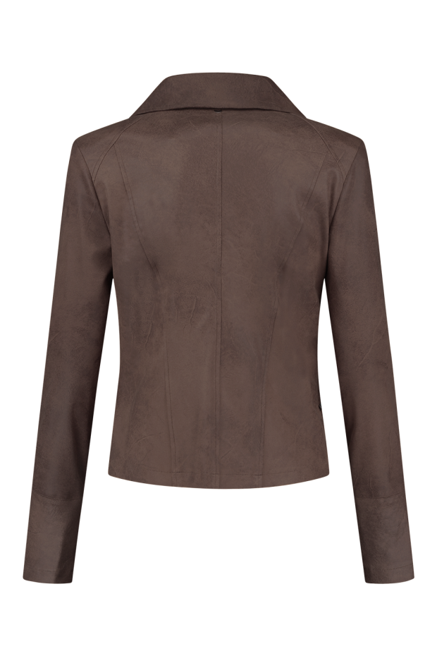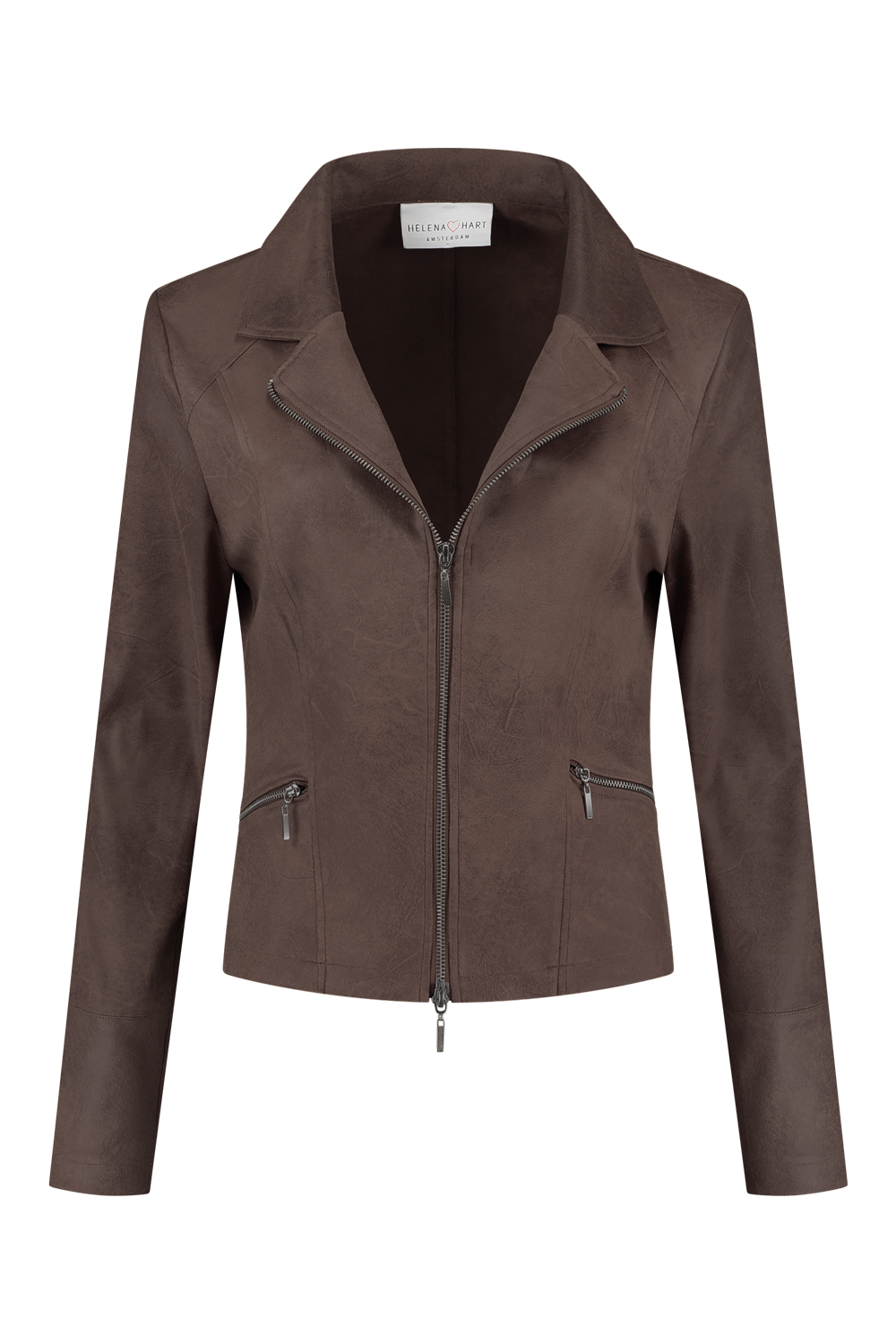Maak kennis met de stijlvolle Zipper Biker blazer van HELENA HART, een must-have voor elke modebewuste vrouw. Deze chique blazer in de kleur Choco is de perfecte aanvulling op je wintergarderobe, waarmee je zowel warmte als stijl toevoegt aan je outfits.
