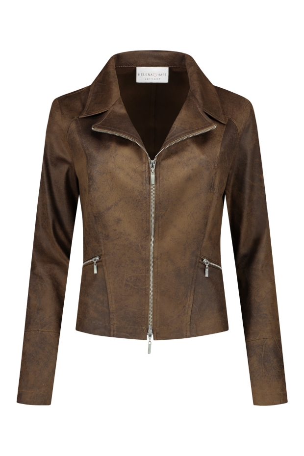 Maak kennis met de stijlvolle Zipper Biker jas van HELENA HART, een must-have voor elke modebewuste vrouw. Deze jas, perfect voor de winter, combineert functionaliteit met fashion in een prachtige donkerbruine kleur. Voel je zelfverzekerd en trendy, ongeacht het weer.