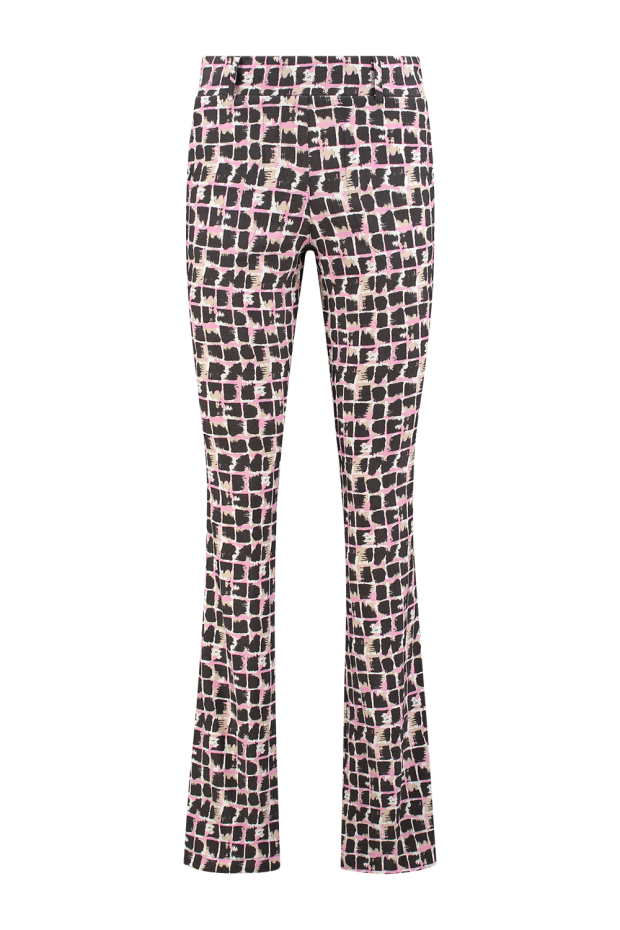 Ontdek de charme van de zomer met de HELENA HART 7308Bri Flair Print Briks in de verleidelijke kleur roze. Deze flared broek combineert moeiteloos stijl met comfort, waardoor het de perfecte keuze is voor elke dame die haar garderobe een frisse en modieuze impuls wil geven.