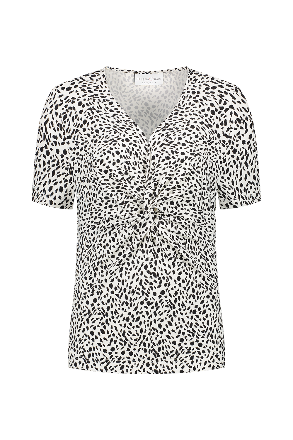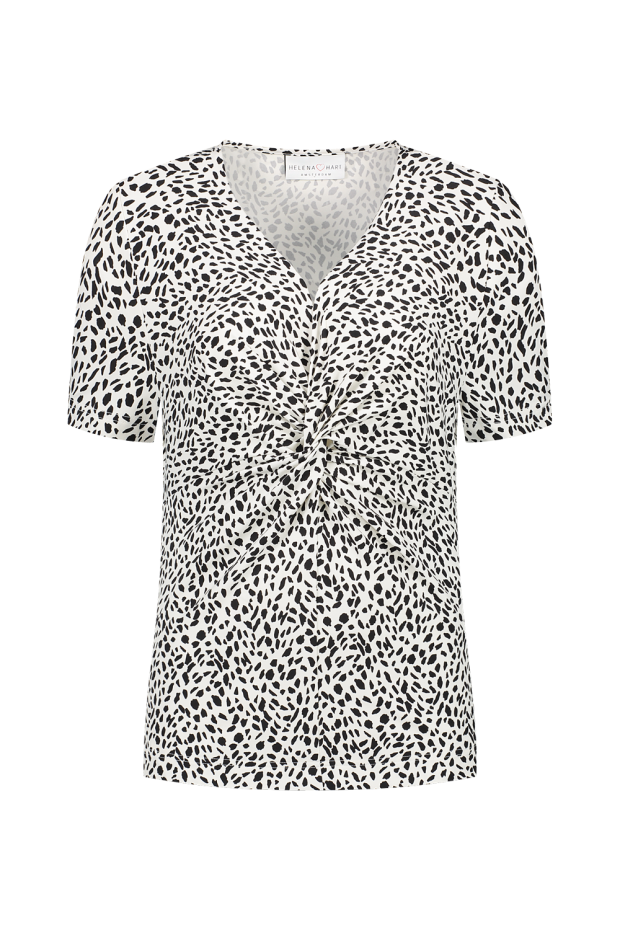 Ontdek de perfecte aanvulling op jouw zomergarderobe met de stijlvolle Top Tara Printo van HELENA HART. Deze elegante top, uitgevoerd in een tijdloze zwart/ecru kleurstelling, is een must-have voor elke modebewuste vrouw. Het T-shirt met korte mouwen combineert moeiteloos comfort met een modieuze uitstraling, waardoor het een veelzijdig kledingstuk is voor zowel casual als chique gelegenheden.