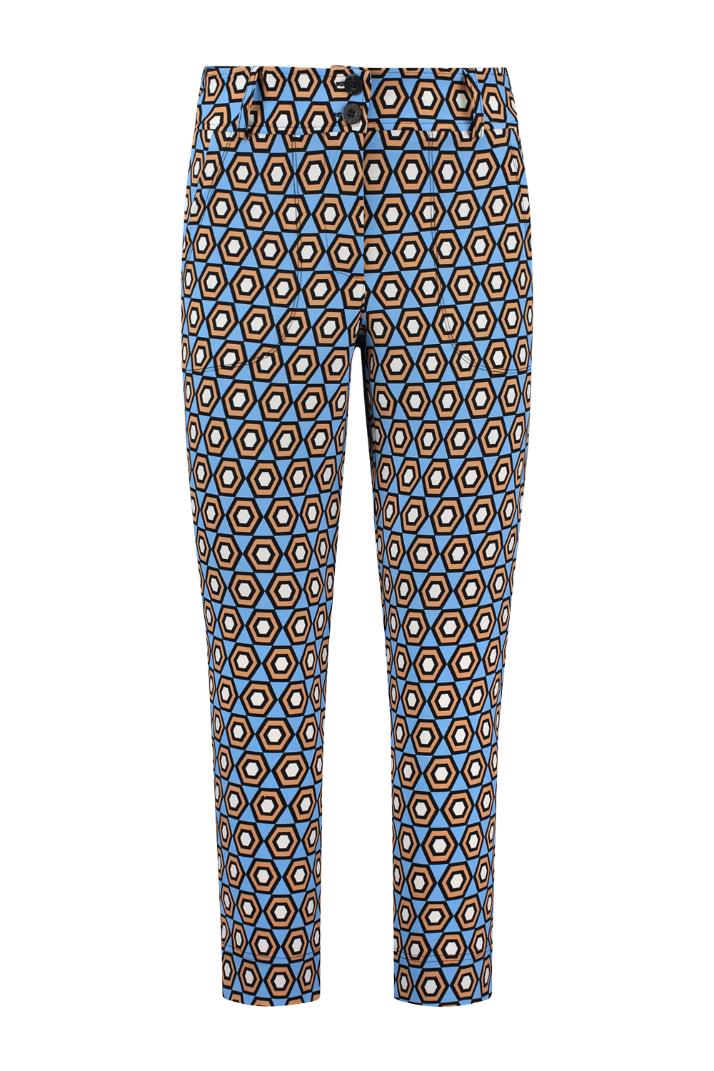 Ontdek de perfecte aanvulling op jouw zomerse garderobe met de stijlvolle Jimmy 7/8 Printo broek van HELENA HART. Uitgevoerd in een schitterend blauwe kleur, genaamd Azure, belichaamt deze broek de essentie van zomerse elegantie en comfort. Ideaal voor dames die waarde hechten aan zowel stijl als gemak.