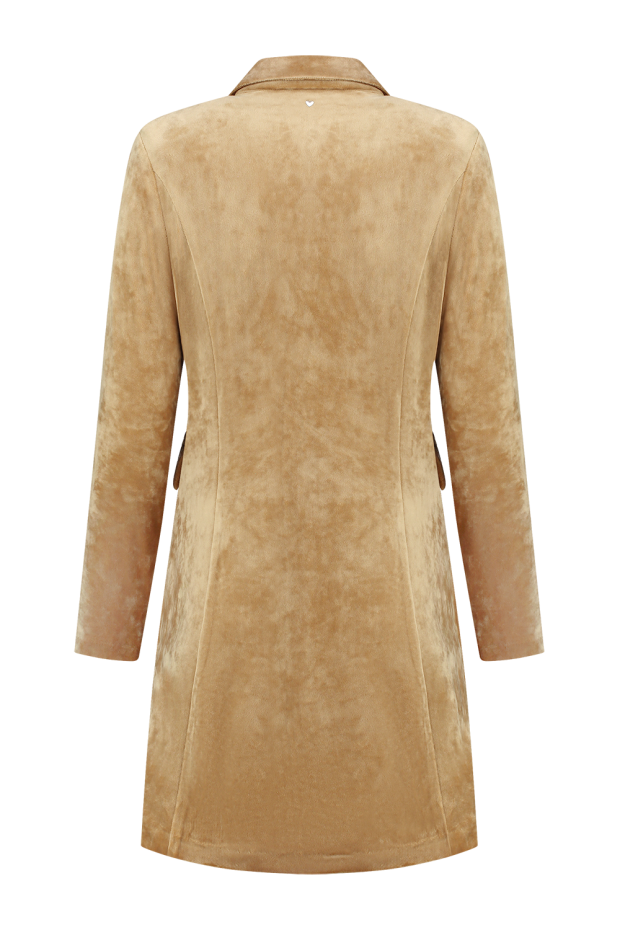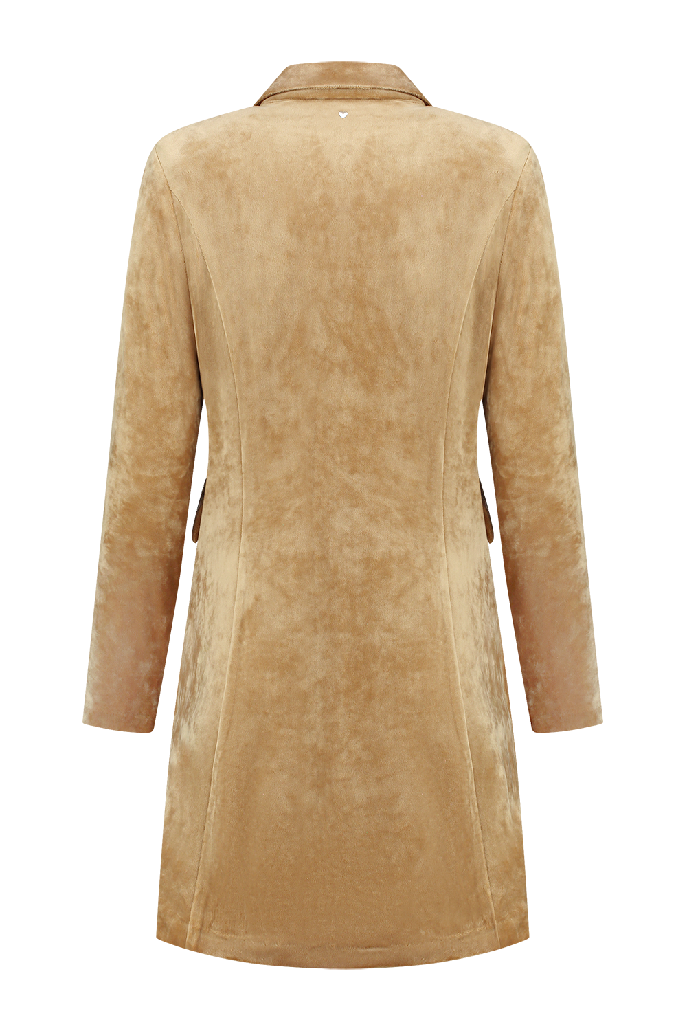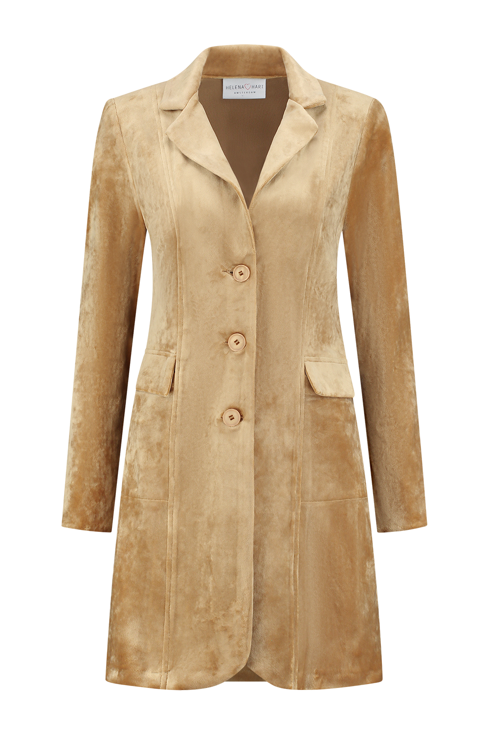 Ontdek de elegantie en tijdloze charme van de HELENA HART Velours Lang Uni jas in de prachtige kleur camel. Deze stijlvolle blazer is perfect voor dames die waarde hechten aan kwaliteit en een verfijnde uitstraling. Met zijn winterse warmte en luxueuze uitstraling is dit de ideale toevoeging aan je garderobe voor de koudere maanden.