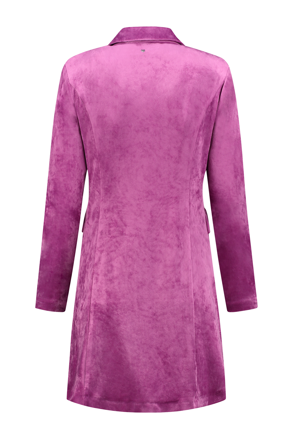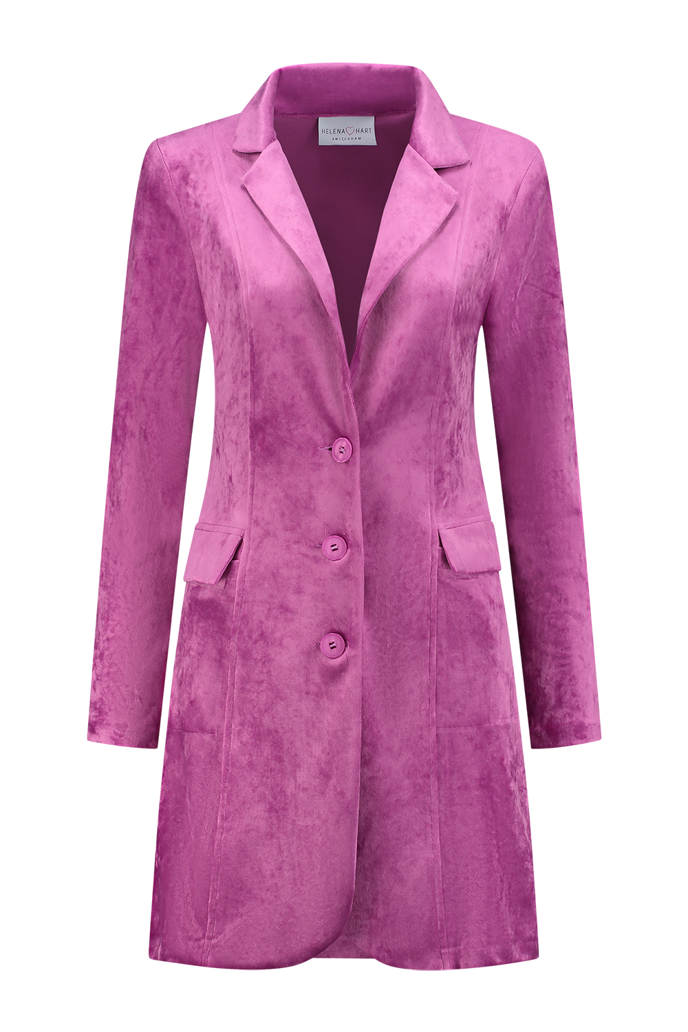 Ontdek de perfecte aanvulling op jouw wintergarderobe met de stijlvolle Velours Lang Uni blazer van HELENA HART in de verleidelijke kleur Cyclaam. Deze prachtige roze blazer combineert moeiteloos comfort met elegantie, waardoor het een must-have is voor elke modebewuste vrouw.