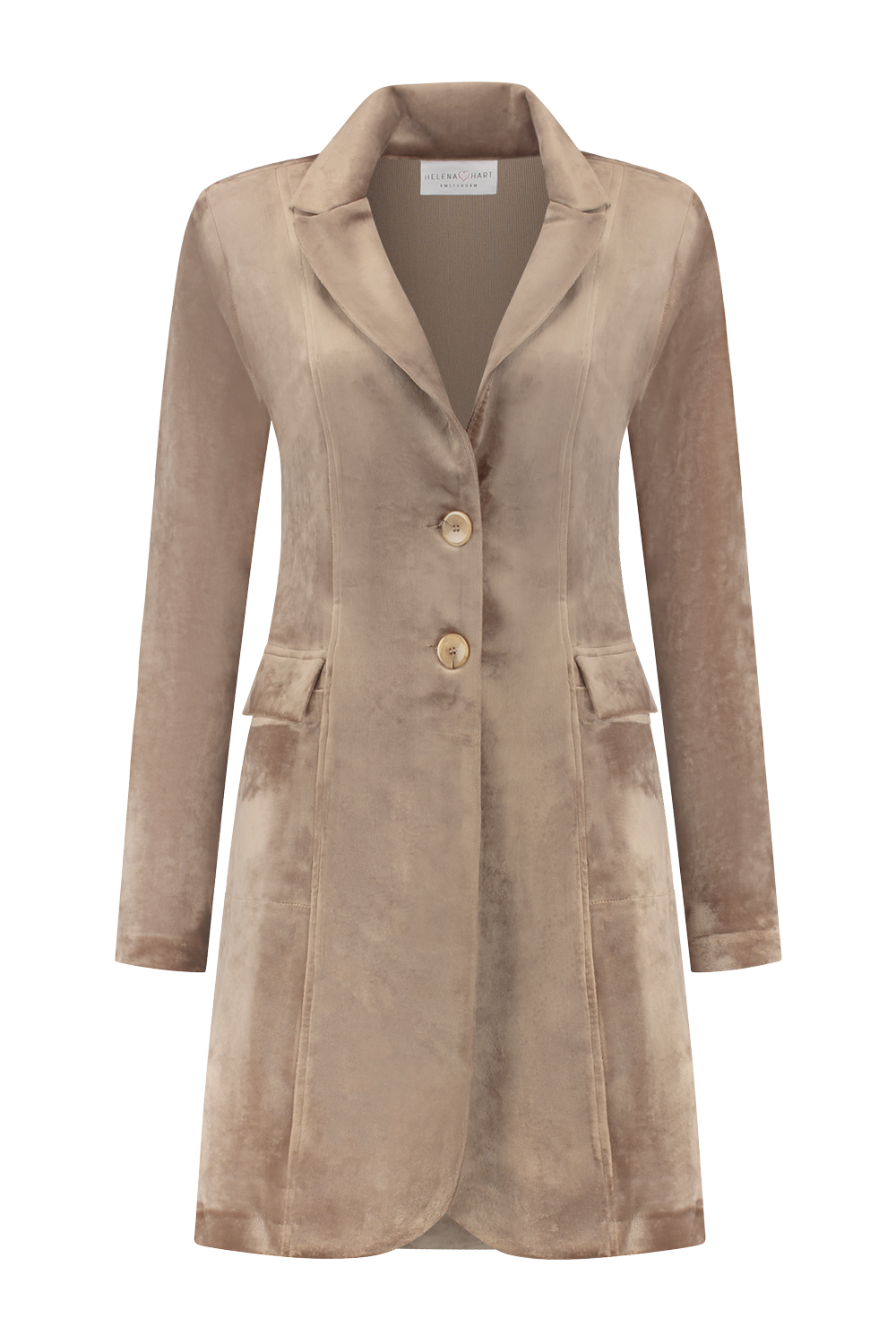 Ontdek de stijlvolle en tijdloze charme van de HELENA HART Velours Lang Uni Blazers in de elegante kleur Latte. Perfect voor de modebewuste vrouw die op zoek is naar een combinatie van comfort en klasse. Deze blazer, ideaal voor de wintermaanden, voegt een vleugje luxe toe aan elke outfit.