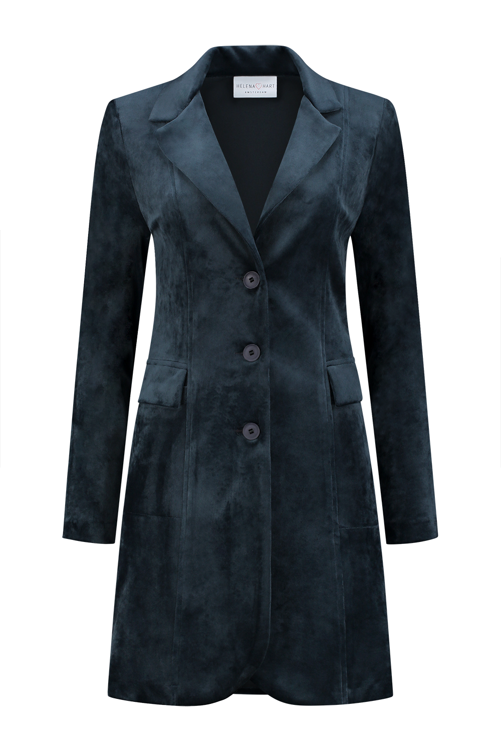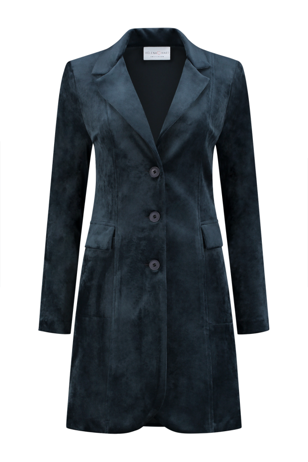 Ontdek de tijdloze elegantie en het comfort van de HELENA HART Velours Lang Uni blazer in stijlvol donkerblauw. Deze prachtige damesjas, perfect voor de wintermaanden, combineert moeiteloos mode met functionaliteit. Of je nu gaat voor een zakelijke look of een avondje uit, deze blazer voegt een vleugje klasse toe aan elke outfit.