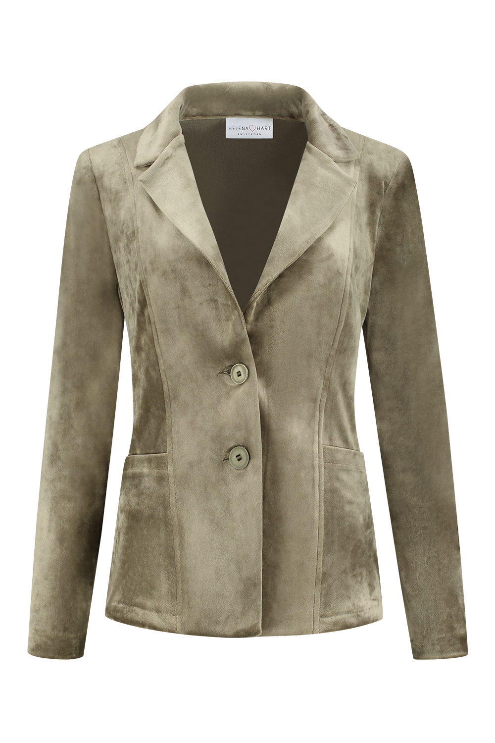 Ontdek de perfecte aanvulling op jouw wintergarderobe met de stijlvolle Velours Kort Uni blazer in olijf van HELENA HART. Deze prachtige damesjas combineert moeiteloos elegantie met comfort, waardoor het een must-have is voor elke modebewuste vrouw. Laat je inspireren door de rijke olijfkleur en voeg een vleugje klasse toe aan je dagelijkse outfits.