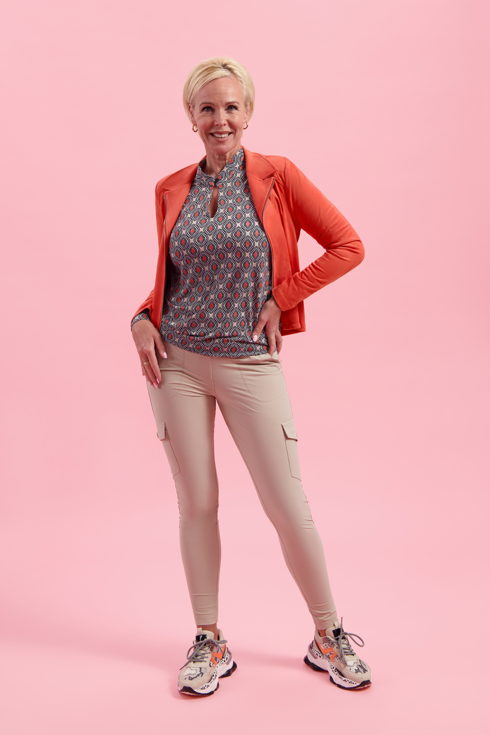 Ontdek de perfecte aanvulling op jouw zomergarderobe met de 7470Disc Top Just Print Disc van HELENA HART in een prachtige abrikooskleur. Deze top, ontworpen voor de modebewuste vrouw, combineert stijl met comfort, waardoor het een must-have is voor elke gelegenheid.