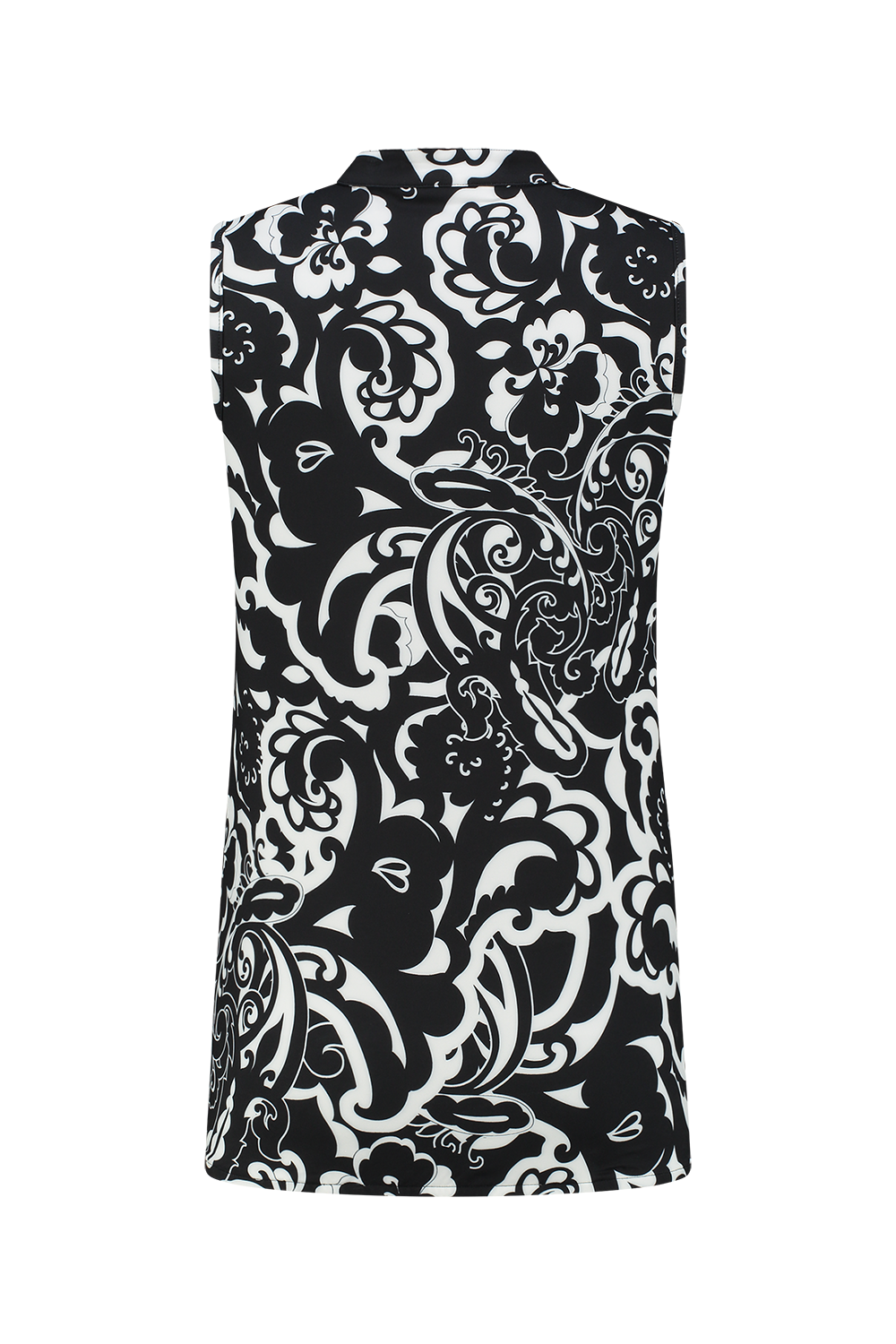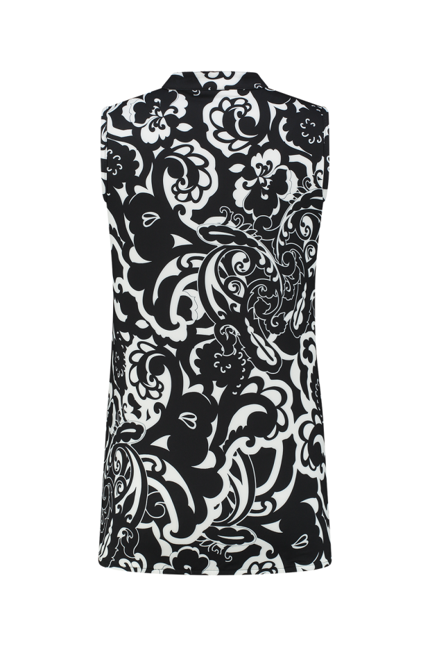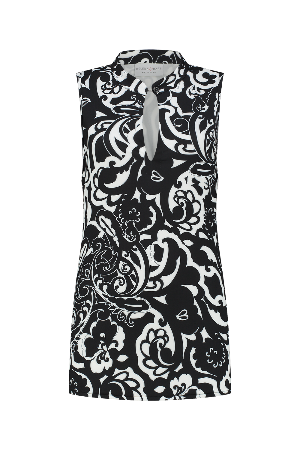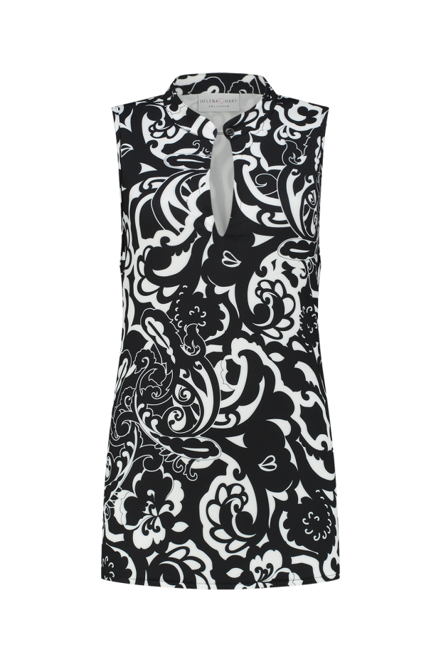 Ontdek de perfecte aanvulling op jouw zomerse garderobe met de Top Bella Print Fiore van HELENA HART. Deze stijlvolle top, uitgevoerd in een tijdloze zwart-witte kleurstelling, belichaamt elegantie en comfort. Ideaal voor de modebewuste vrouw die waarde hecht aan kwaliteit en stijl.