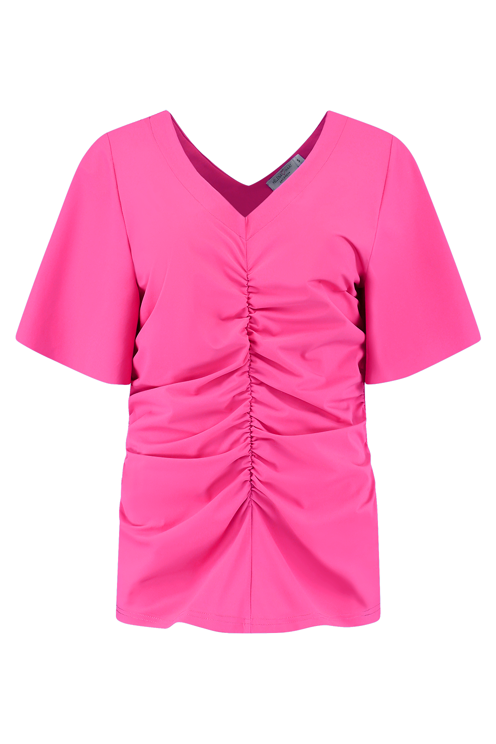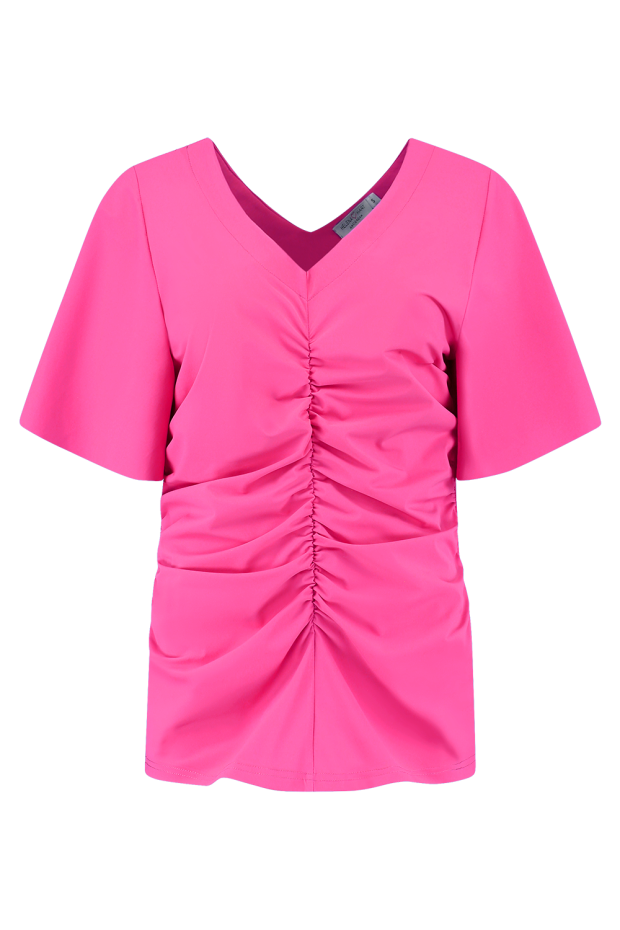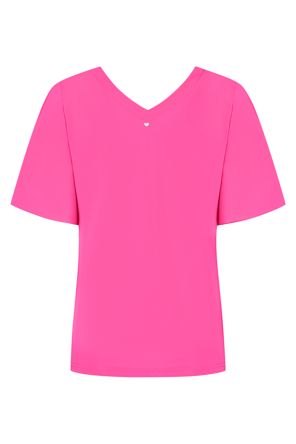 Maak kennis met de sprankelende Top Rumi Transfer van HELENA HART, een must-have voor elke modebewuste vrouw. Deze top in een opvallende fuchsiakleur brengt een frisse wind in je zomergarderobe en is perfect voor zowel een casual als een chique look.