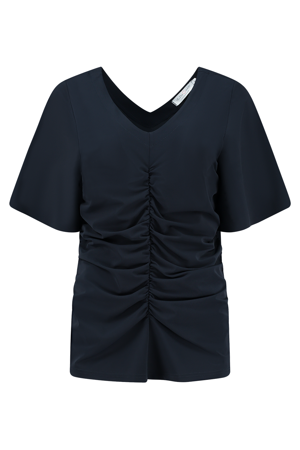 Maak kennis met de stijlvolle Top Rumi Transfer van HELENA HART, een must-have voor elke modebewuste vrouw. Deze prachtige top in donkerblauw, ook bekend als Marine, is de perfecte aanvulling op je zomergarderobe. Het T-shirt met korte mouwen combineert comfort met elegantie, waardoor het een veelzijdig stuk is dat je zowel overdag als 's avonds kunt dragen.