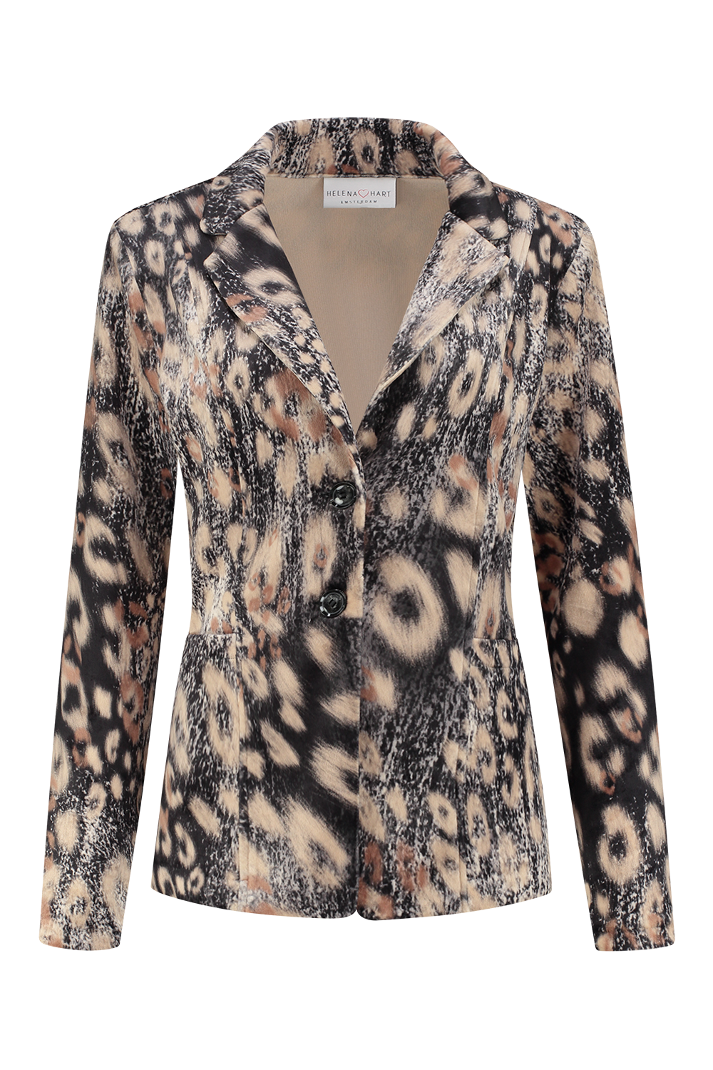 Ontdek de perfecte aanvulling op jouw wintergarderobe met de Blazer Velour Kort Print Mix in de kleur camel van HELENA HART. Deze stijlvolle damesblazer combineert comfort met een modieuze uitstraling, ideaal voor elke gelegenheid.