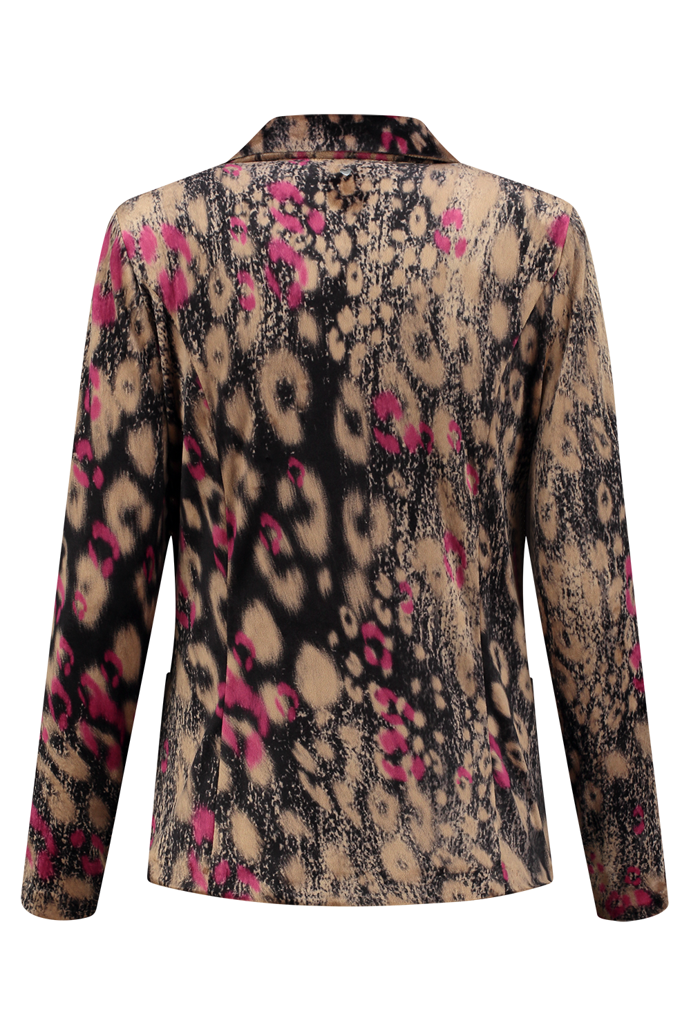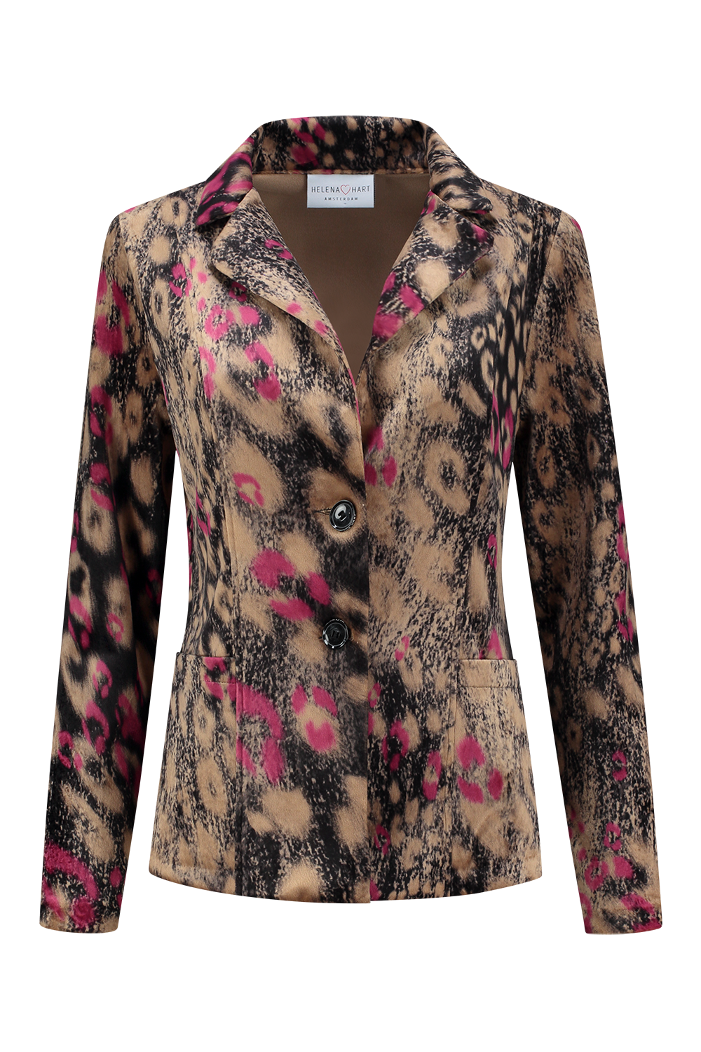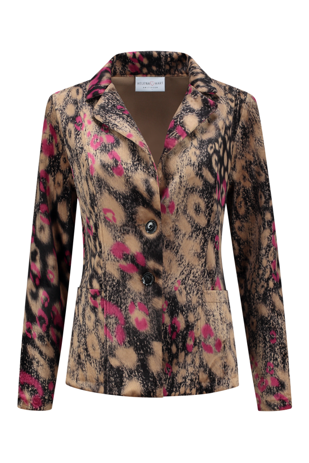 Voeg een vleugje elegantie toe aan je garderobe met de prachtige Blazer Velour Kort Print Mix van HELENA HART in de verleidelijke kleur cyclaam. Deze stijlvolle damesblazer is perfect voor de winter en biedt een unieke combinatie van comfort en mode.