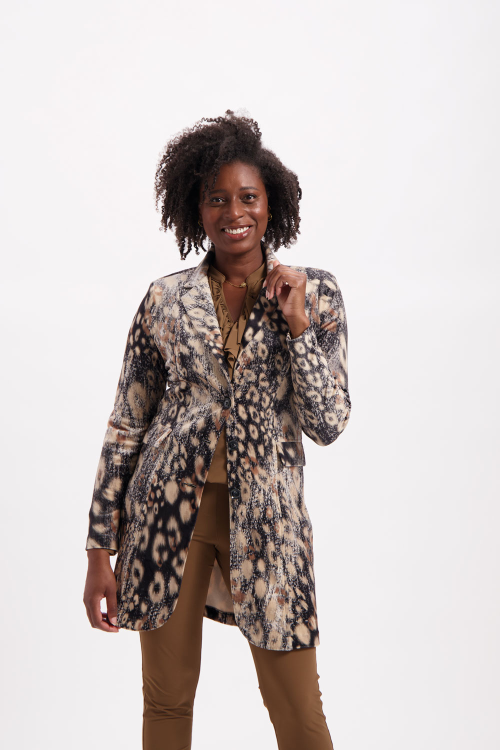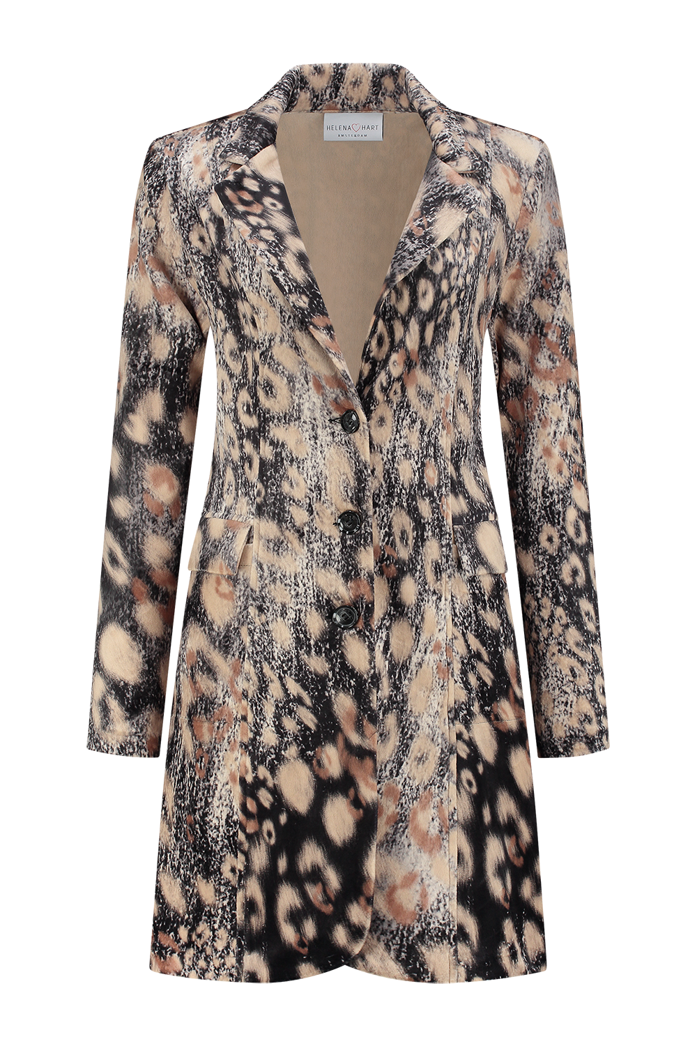 Ontdek de perfecte aanvulling op jouw wintergarderobe met de stijlvolle Blazer Velour Lang Print Mix in de kleur camel van HELENA HART. Deze elegante damesblazer combineert moeiteloos comfort met een modieuze uitstraling, waardoor het een onmisbaar item is voor elke modebewuste vrouw.