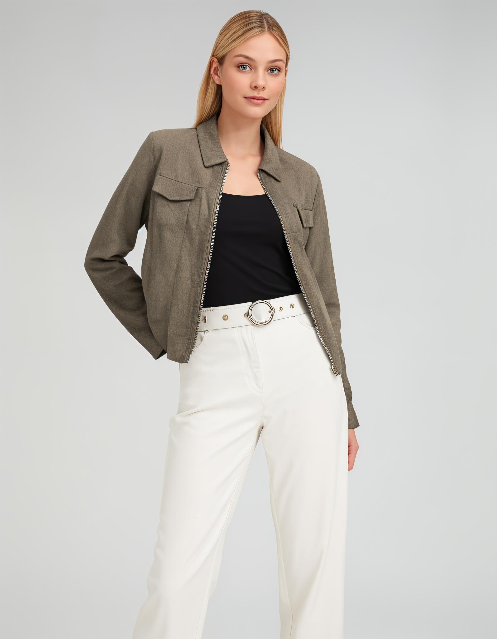 Ontdek de perfecte aanvulling op jouw garderobe met de Blazer Cooper Biker in stijlvol Army groen van HELENA HART. Deze blazer combineert moeiteloos elegantie met een stoere biker uitstraling, waardoor het een veelzijdig kledingstuk is dat je zowel casual als formeel kunt dragen.