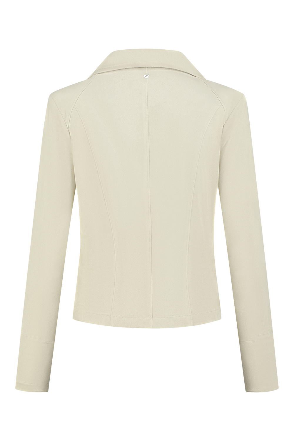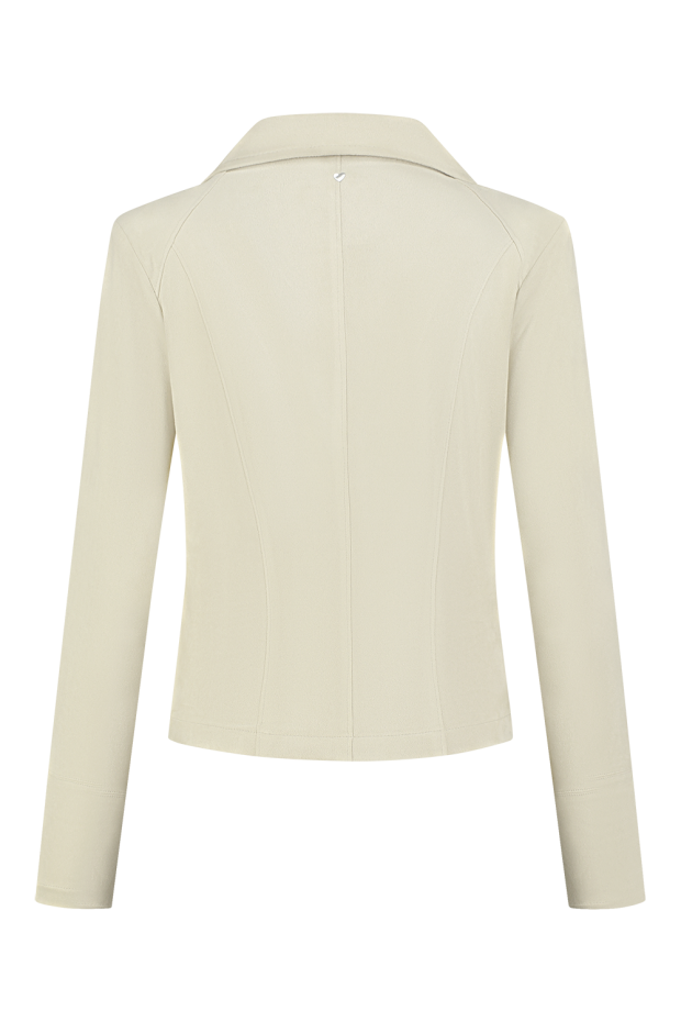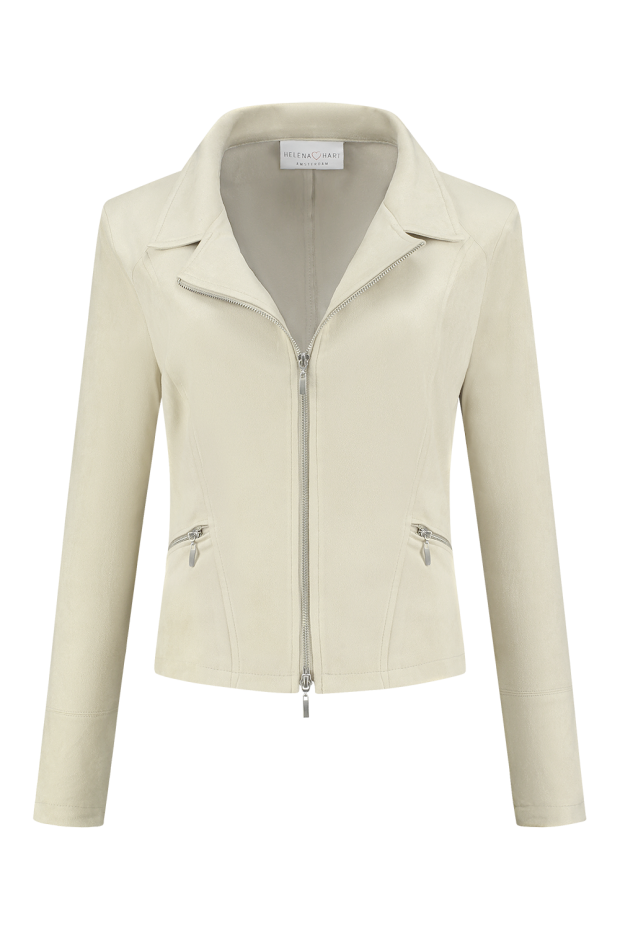 Ontdek de perfecte aanvulling op jouw zomerse garderobe met de stijlvolle Zipper Suedine blazer van HELENA HART in een prachtige off white kleur. Deze blazer combineert moeiteloos elegantie met comfort, waardoor het een must-have is voor elke modebewuste vrouw.