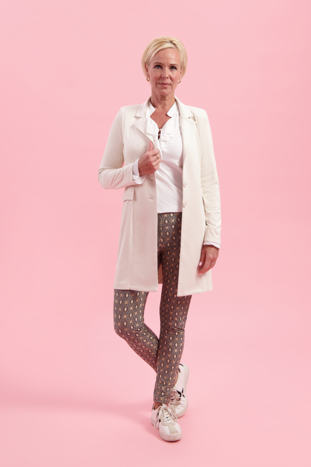 Ontdek de perfecte aanvulling op jouw zomerse garderobe met de stijlvolle 7526 Joe Suedine blazer van HELENA HART in een prachtige off-white kleur. Deze blazer combineert moeiteloos elegantie met comfort, waardoor het een onmisbaar item is voor elke modebewuste vrouw.