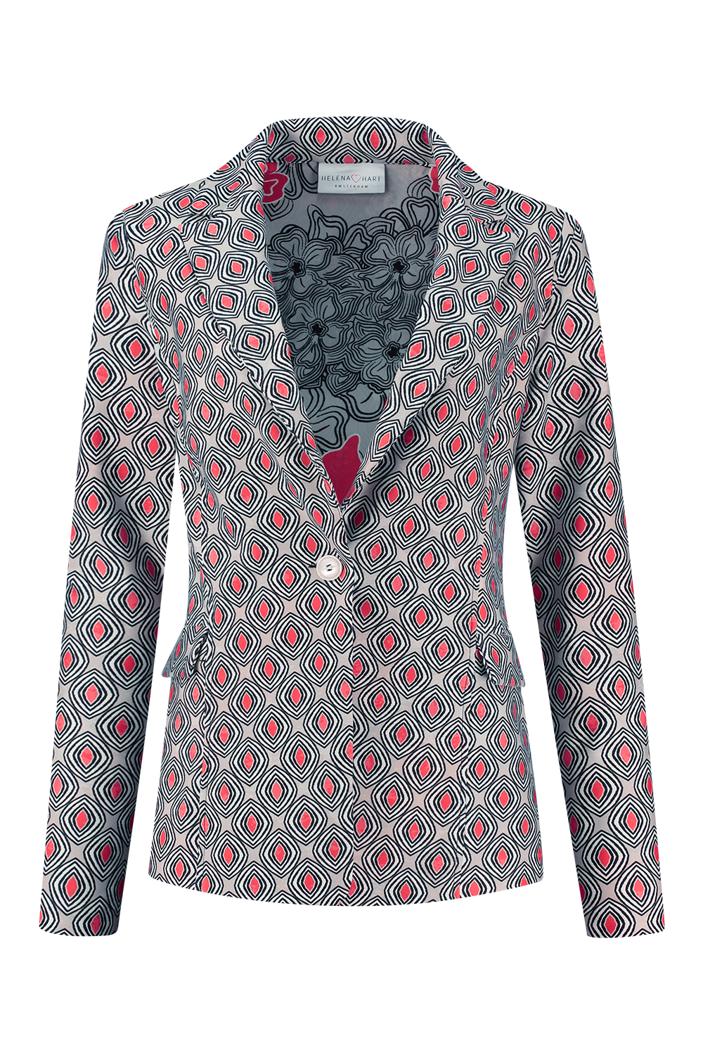 Ontdek de perfecte aanvulling op jouw zomerse garderobe met de Helena Hart Blazer Jake Print in de frisse kleur abrikoos. Deze stijlvolle damesblazer is een echte blikvanger en biedt een unieke combinatie van comfort en elegantie. Ideaal voor zowel een formele gelegenheid als een casual uitstapje.