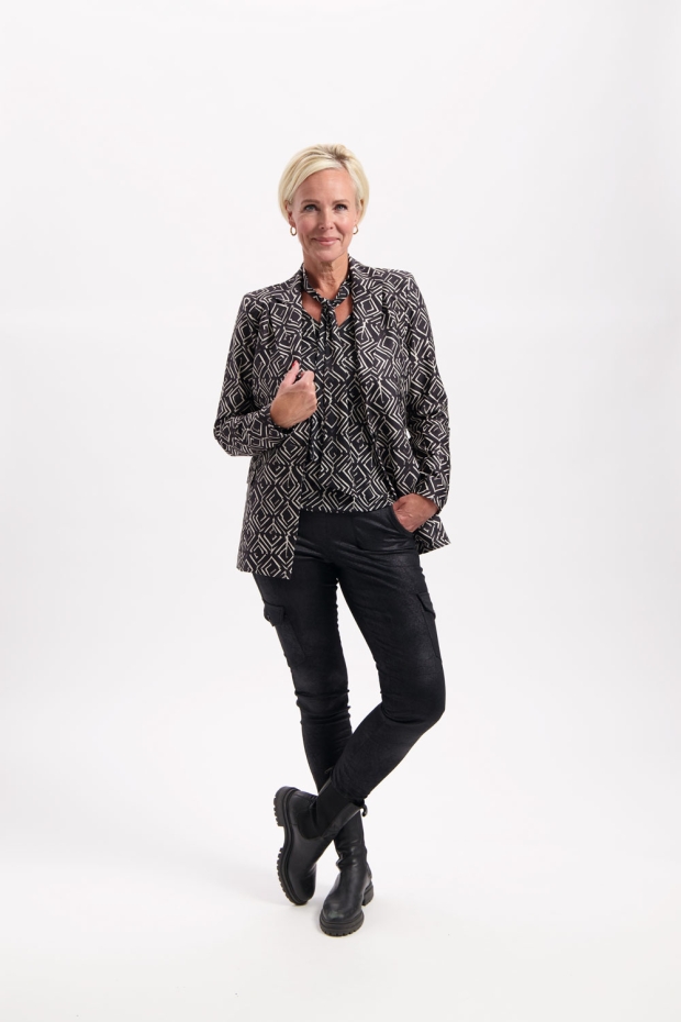 Ontdek de perfecte aanvulling op jouw garderobe met de stijlvolle Blazer Jake Print Gio in klassiek zwart van HELENA HART. Deze blazer, speciaal ontworpen voor dames, combineert moeiteloos elegantie met comfort, waardoor het een ideale keuze is voor zowel formele als informele gelegenheden tijdens de wintermaanden.