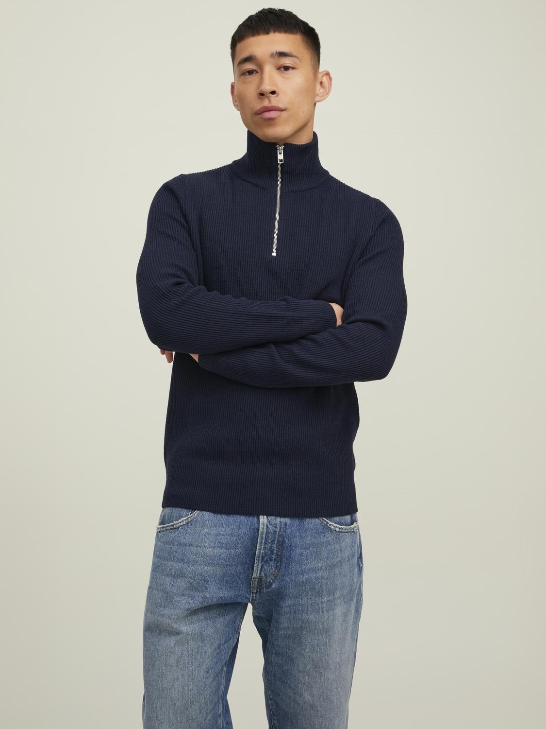 J&J Premium 12216768 JPRCCPERFECT KNIT HALF ZIP SN Maritime Blue Maritime Navy