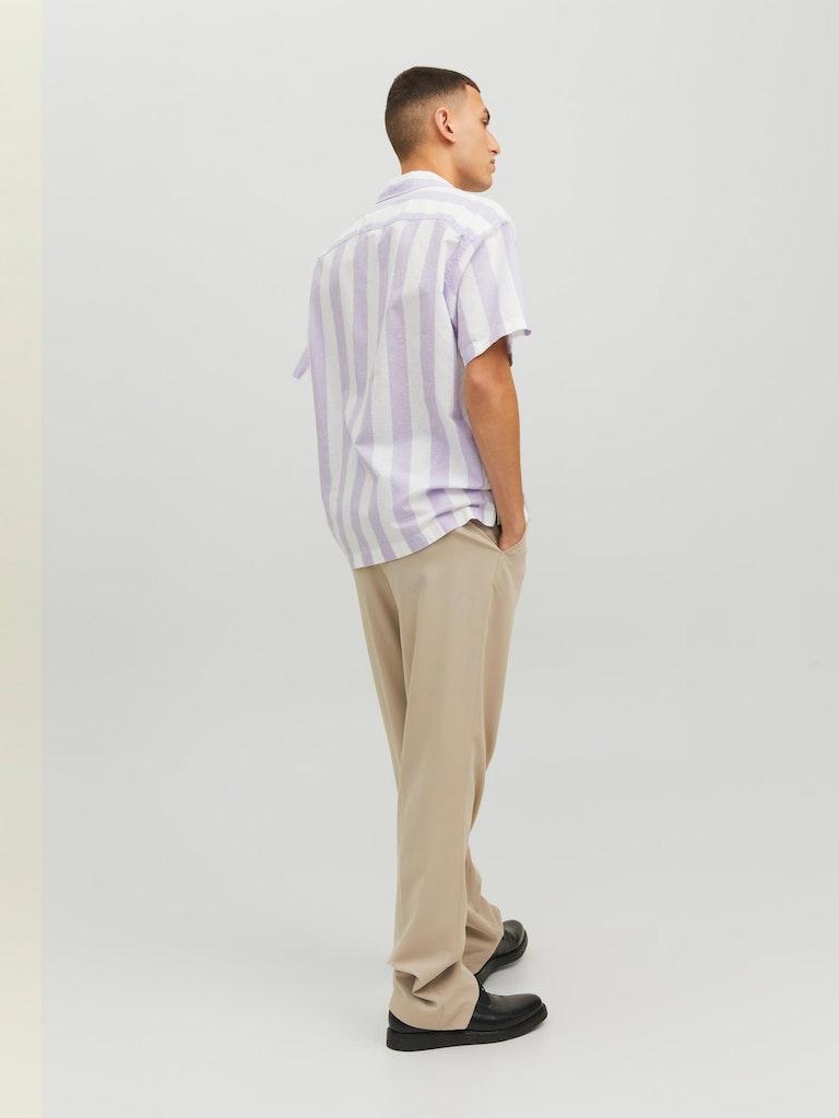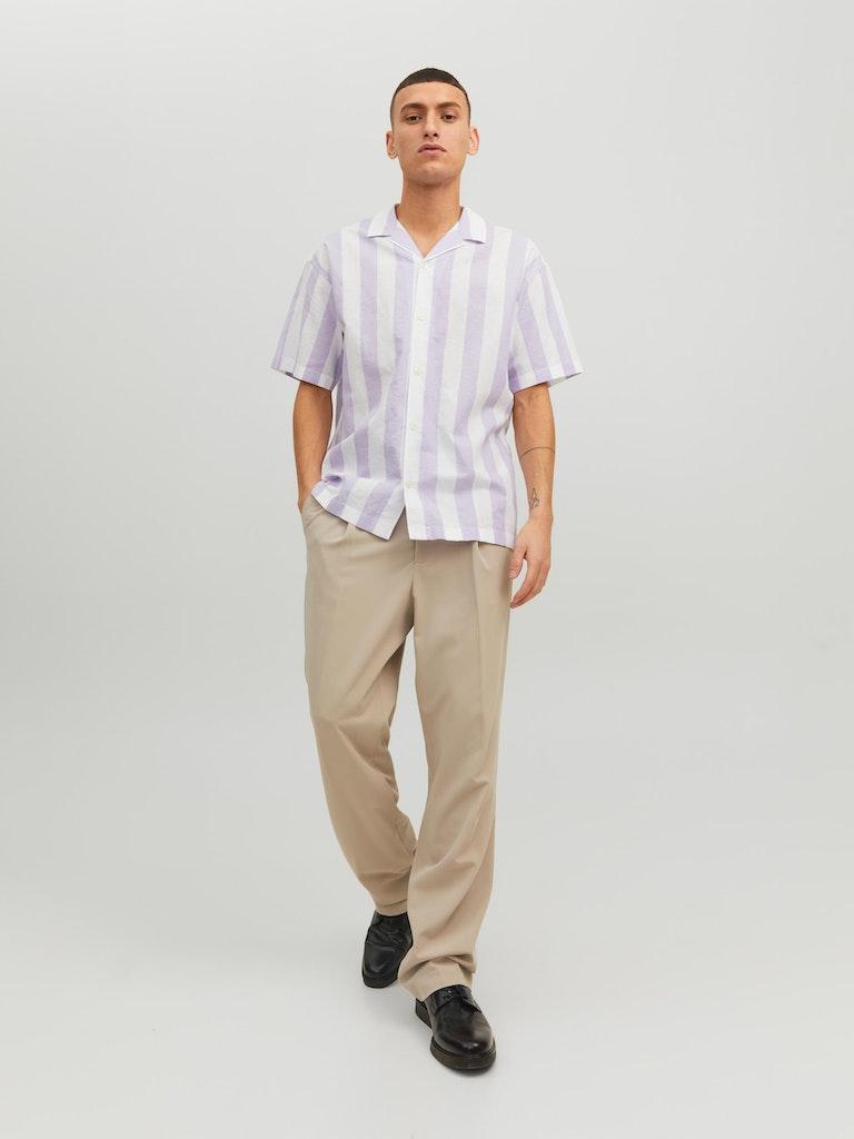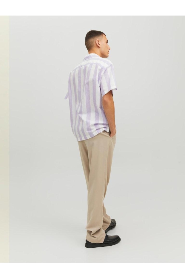 J&J Premium JPRSUMMER LINEN STRIPE SHIRT S/S LN Sunlit Allium RELAXED FIT