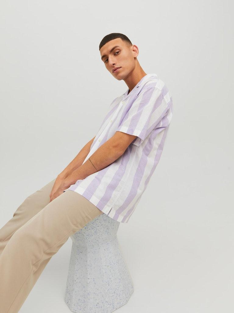 Maak kennis met het ultieme zomeroverhemd voor heren: het JPRSUMMER LINEN STRIPE SHIRT S/S LN van JACK & JONES PREMIUM. Dit stijlvolle overhemd, uitgevoerd in een opvallende paarse kleur met de naam Sunlit Allium, is de perfecte keuze voor de modebewuste man die waarde hecht aan comfort en stijl tijdens de warmere maanden.