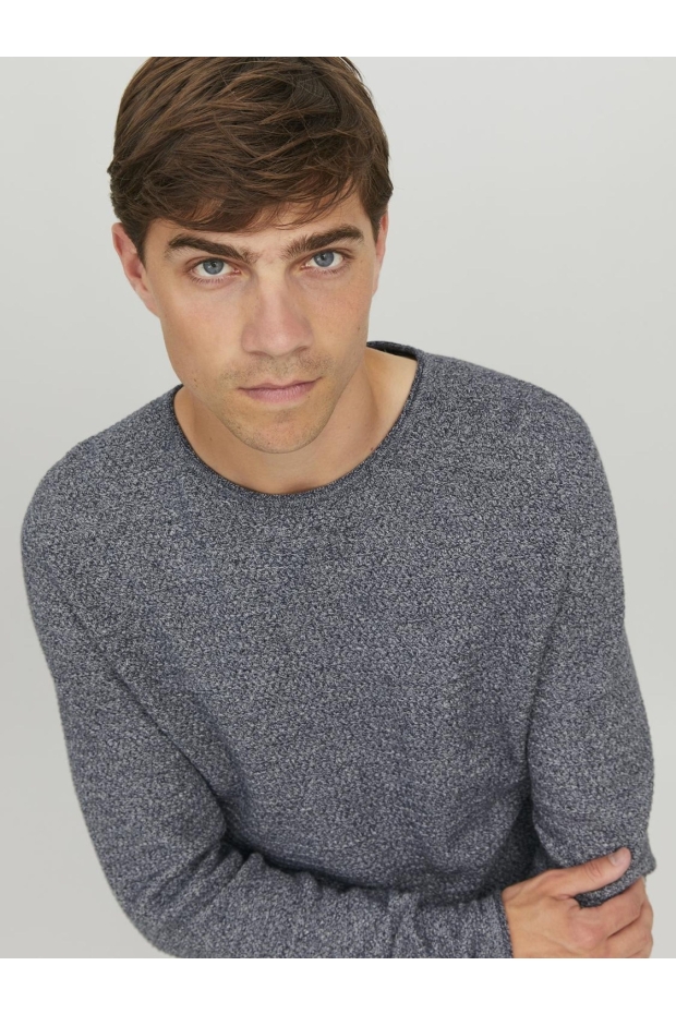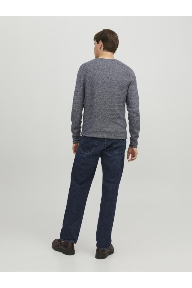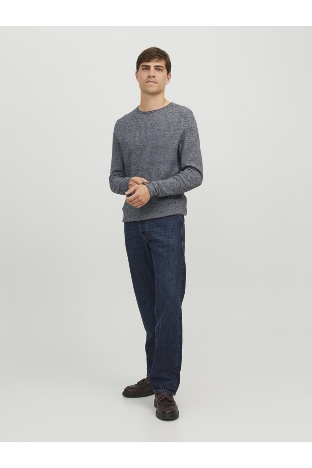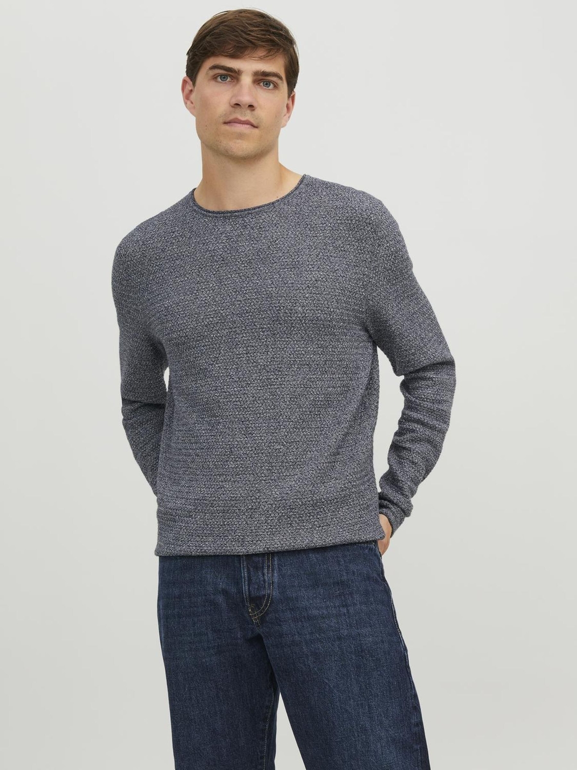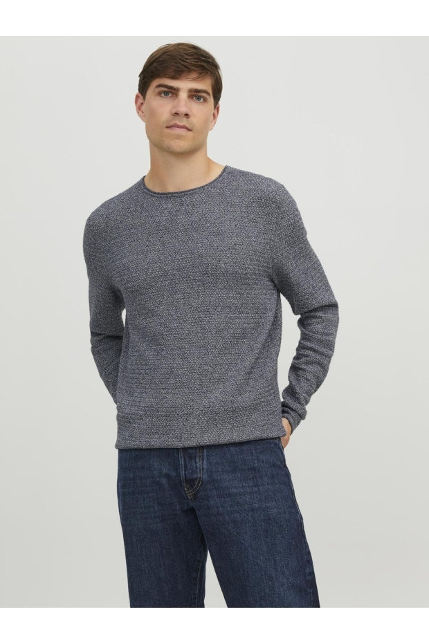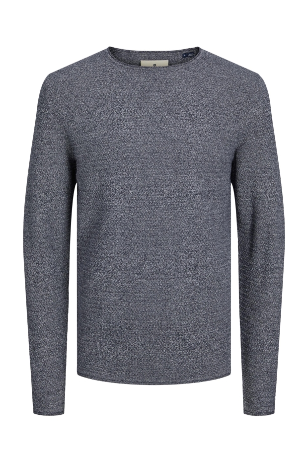 J&J Premium 12238557 JPRBLUMIGUEL KNIT CREW NECK NOOS Maritime Blue Twisted w. Cloud Dancer