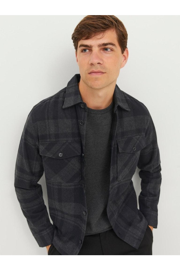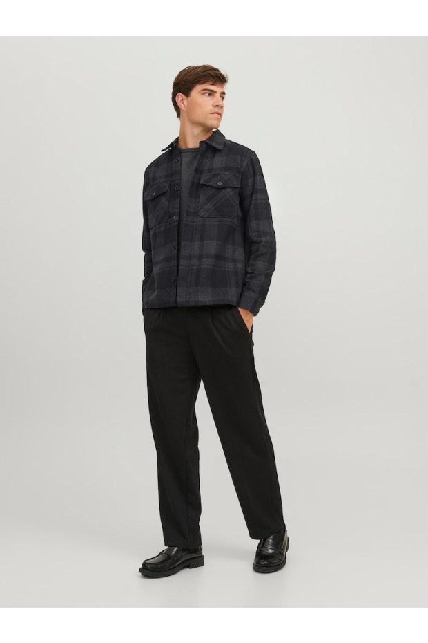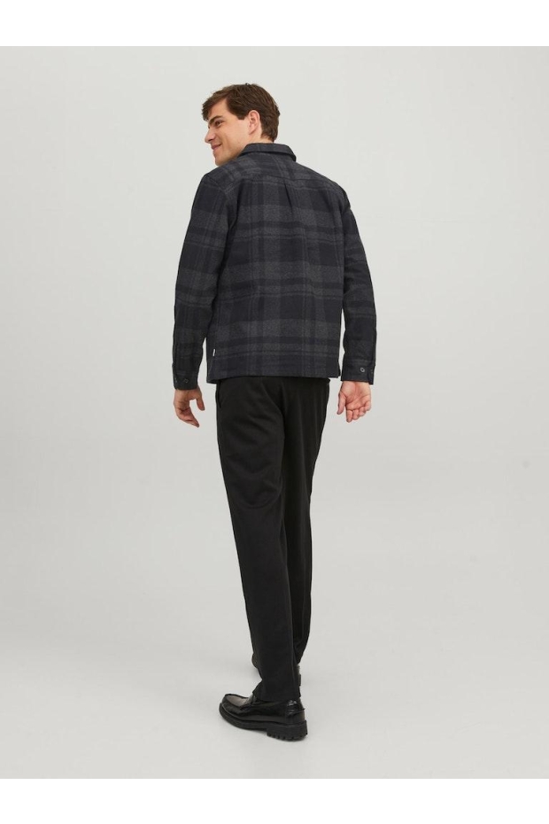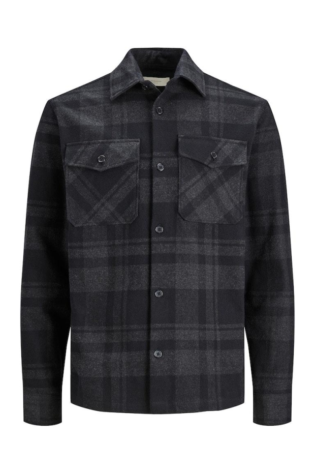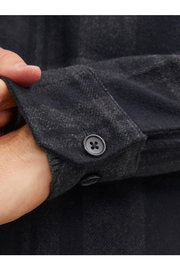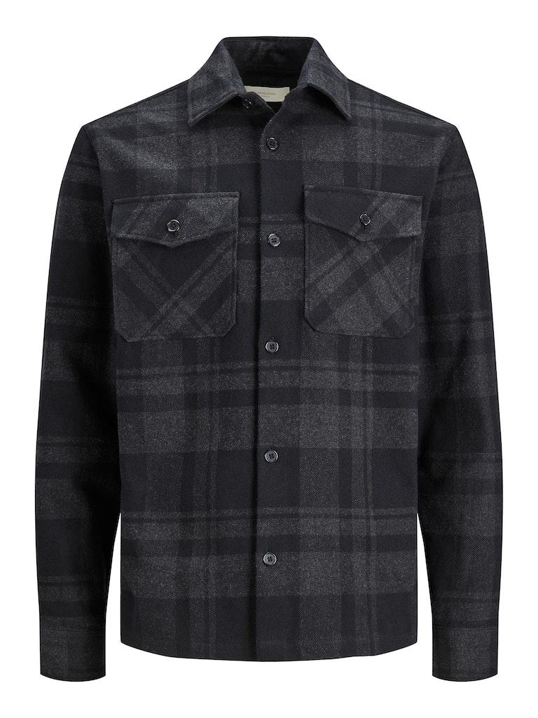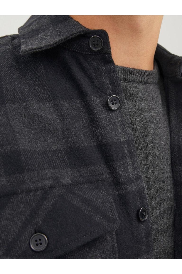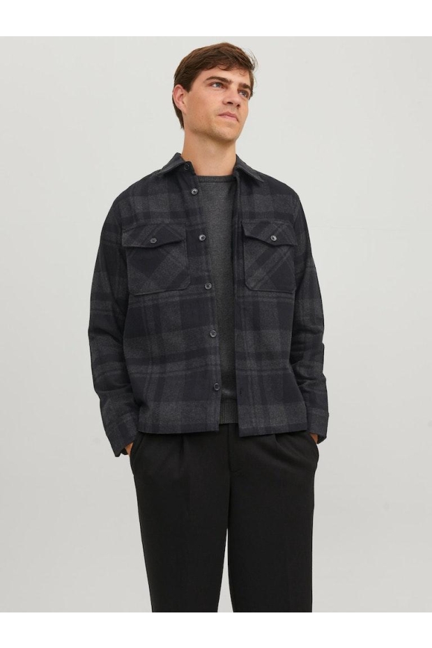J&J Premium 12241533 JPRROY CHECK OVERSHIRT L/S SN Dark Grey Melange COMFORT FIT