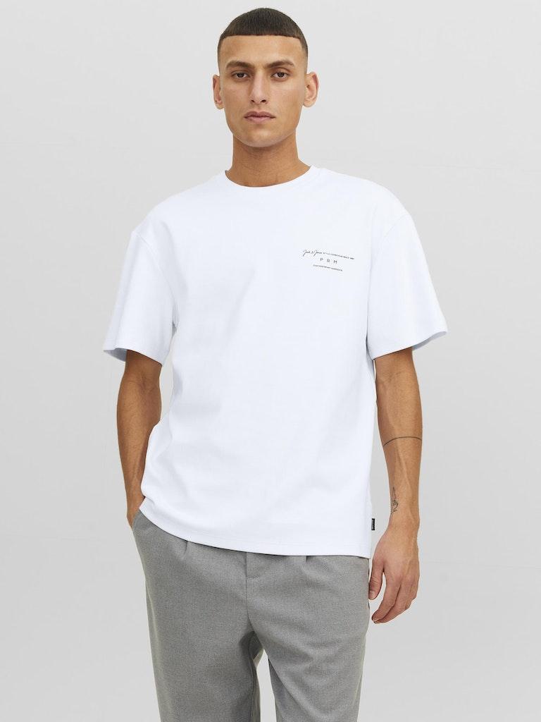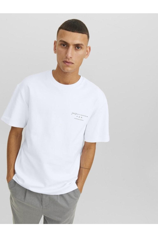 J&J Premium 12245400 JPRBLASANCHEZ BRANDING TEE CREW NECK SN Bright White