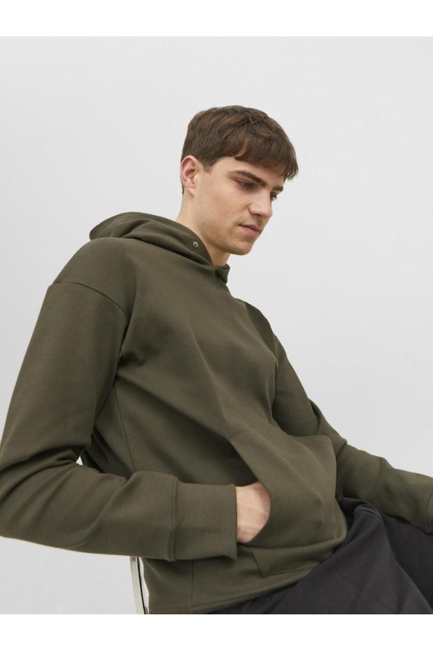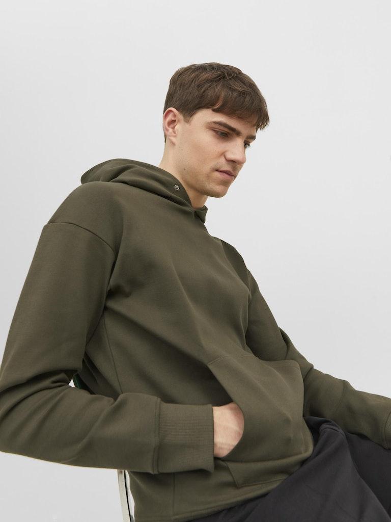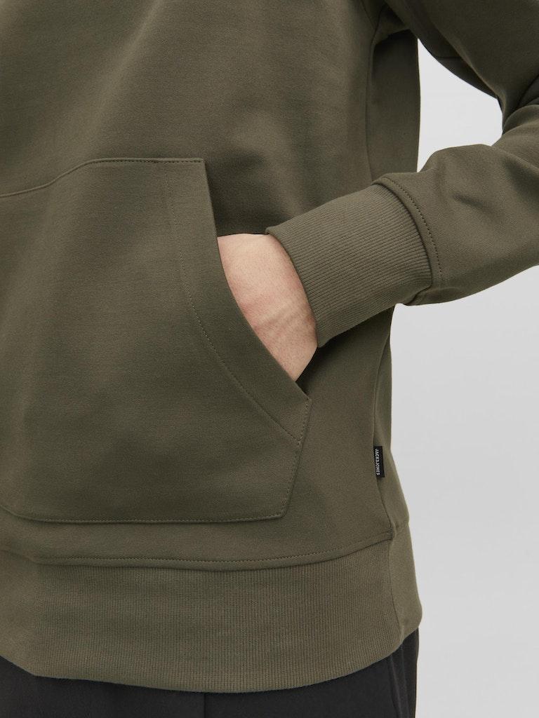 Ontdek de perfecte aanvulling op jouw wintergarderobe met de stijlvolle JACK & JONES PREMIUM hoodie in een diepe, donkergroene kleur. Deze hoodie, ontworpen voor de modebewuste man, combineert comfort met een trendy uitstraling, waardoor het een must-have is voor de koudere maanden.