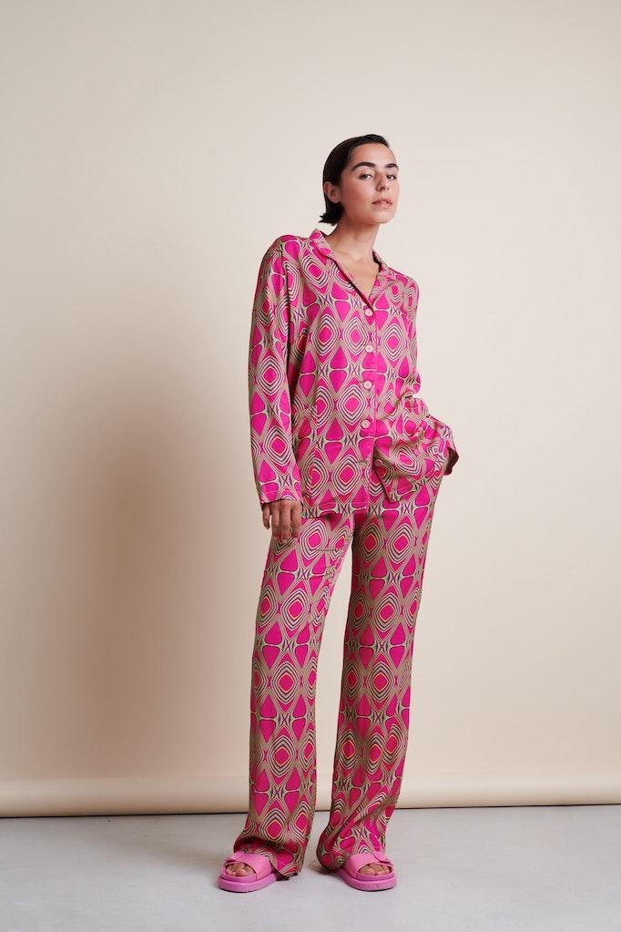Ontdek de perfecte combinatie van stijl en comfort met de Carola Pants van JANE LUSHKA in het oogverblindende fuchsia. Deze broek, gemaakt van milieuvriendelijke eco viscose, biedt niet alleen een ademend en comfortabel gevoel, maar zorgt er ook voor dat je moeiteloos een statement maakt.