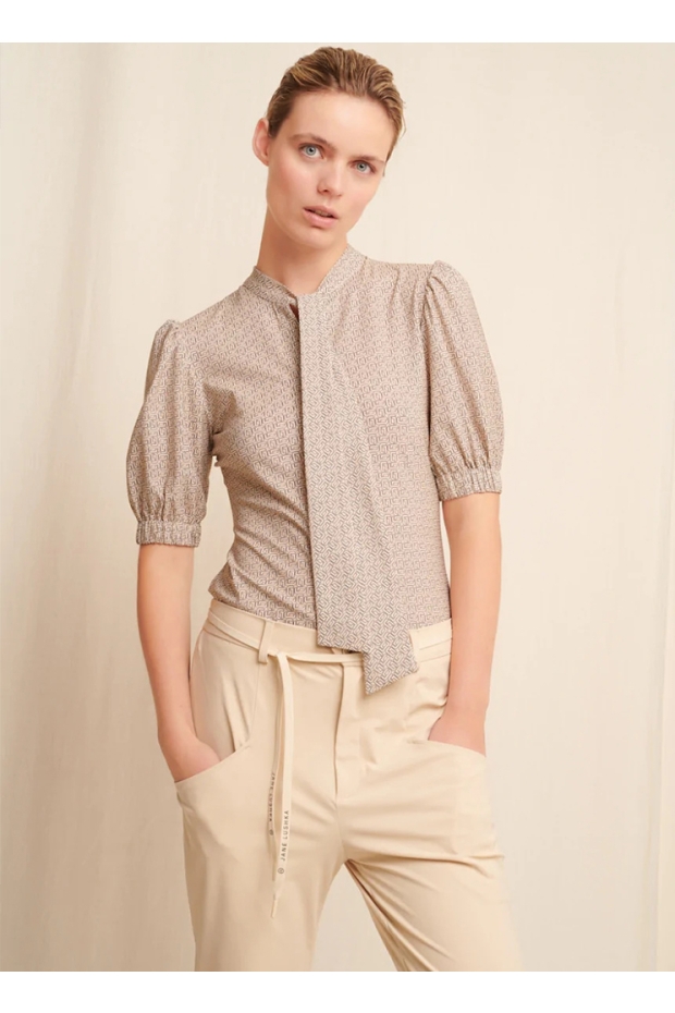 Ontdek de perfecte combinatie van stijl en comfort met de Tonnie Blouse van JANE LUSHKA. Deze elegante blouse in een tijdloze beige kleur is jouw ideale partner voor zowel een zakelijke meeting als een casual dagje uit. Gemaakt van technisch jersey, biedt het niet alleen een verfijnde uitstraling maar ook een ongekend draagcomfort.